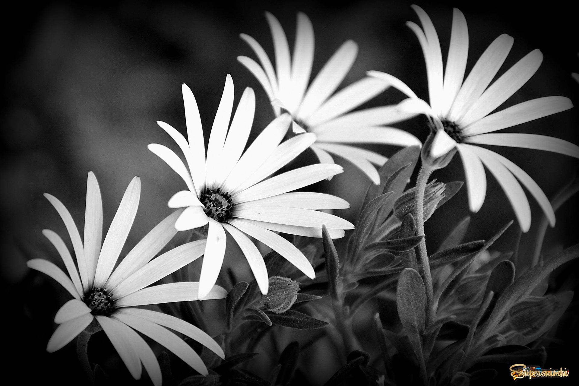 black and white flowers