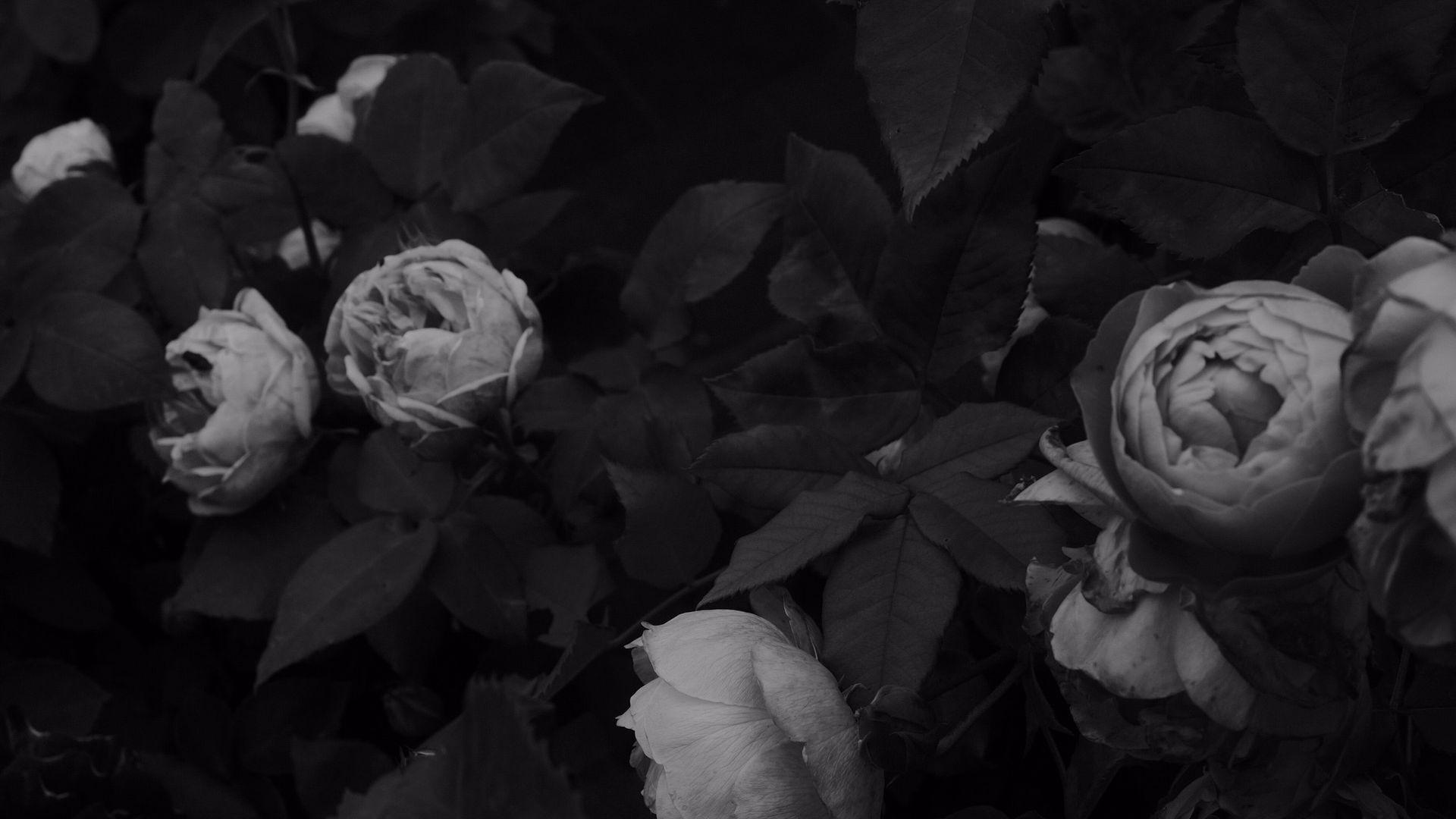 черные обои с цветами