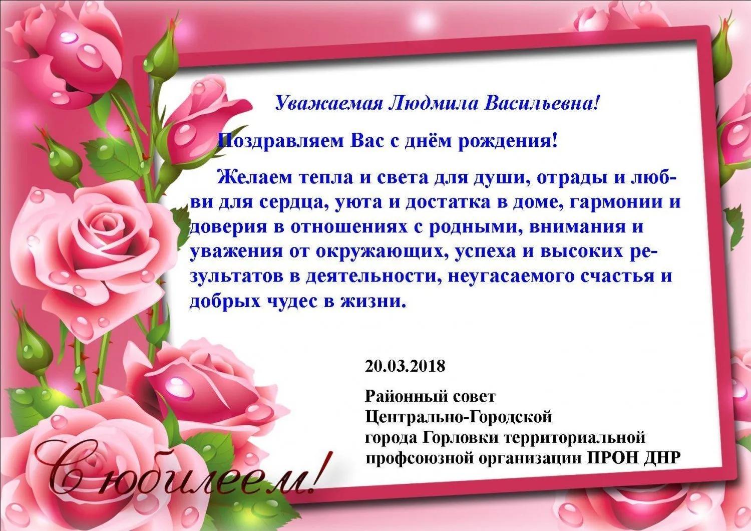 поздравление с днём рождения людмиле васильевне