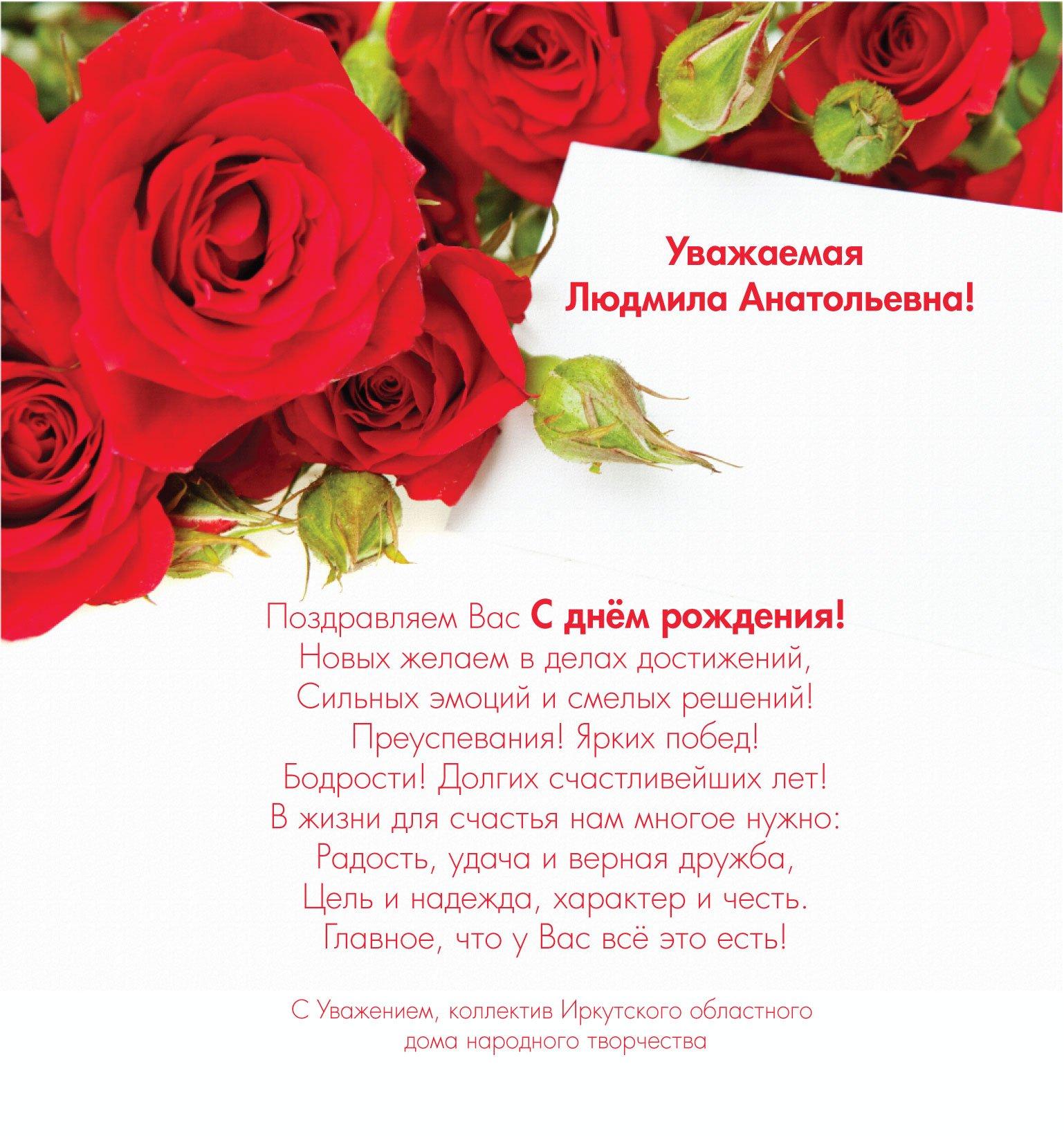 поздравления с днём рождения людмиле анатольевне
