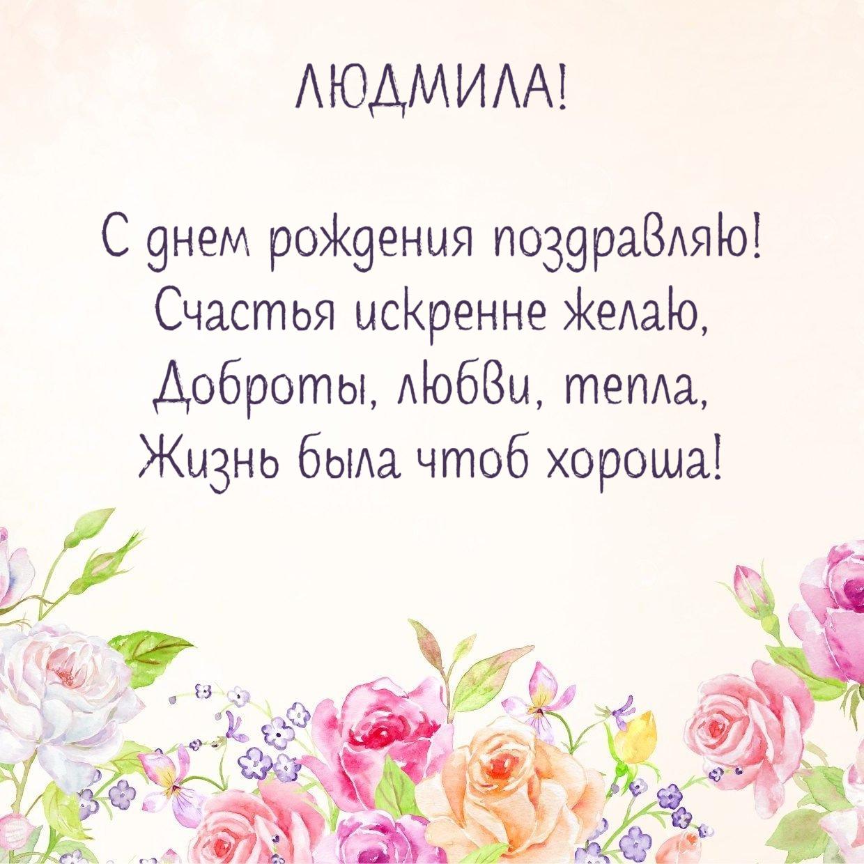 поздравление людмилы с днем рождения открытка