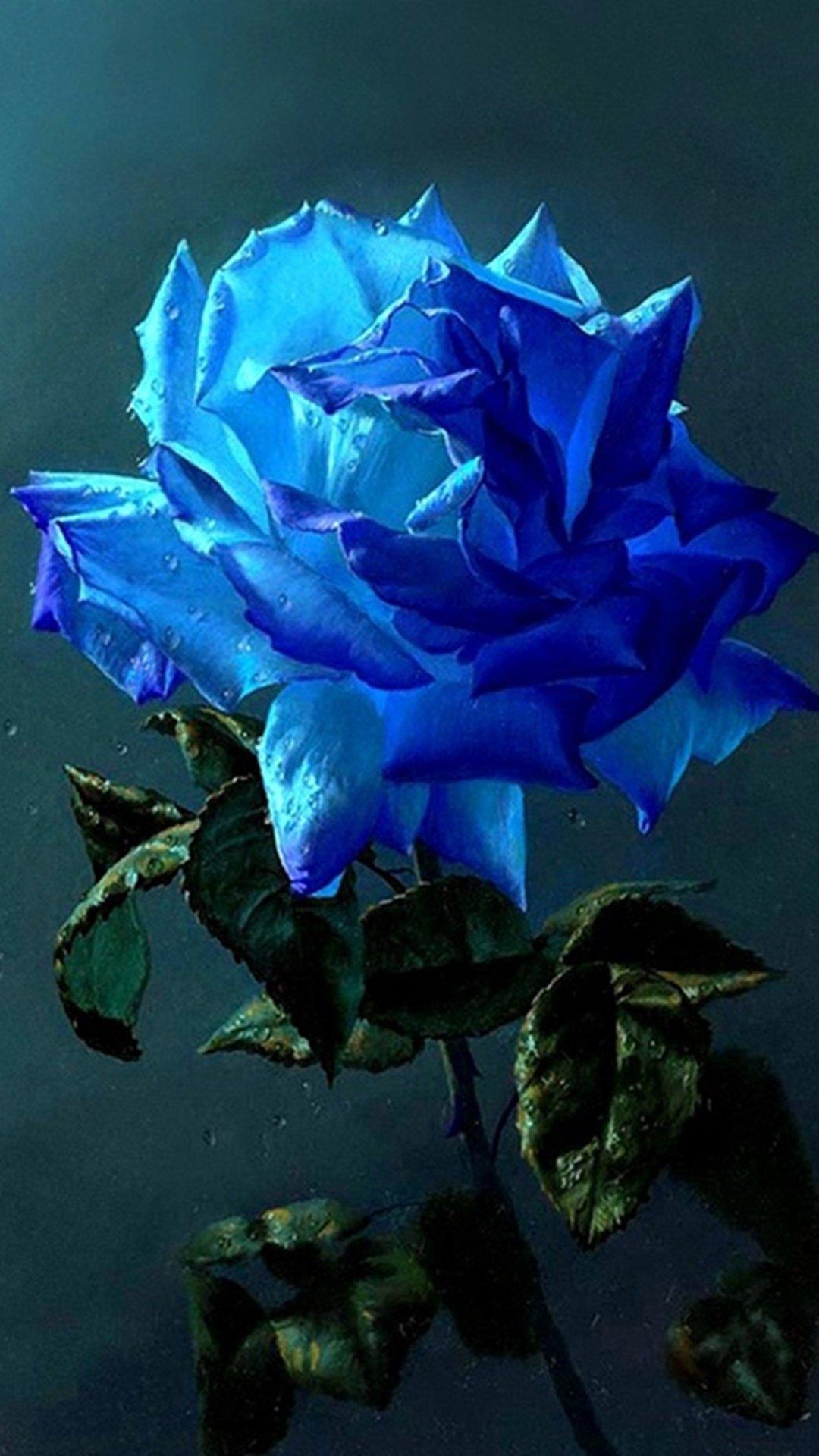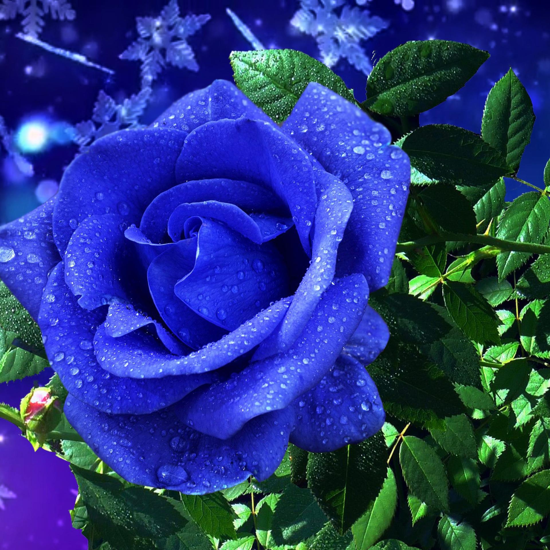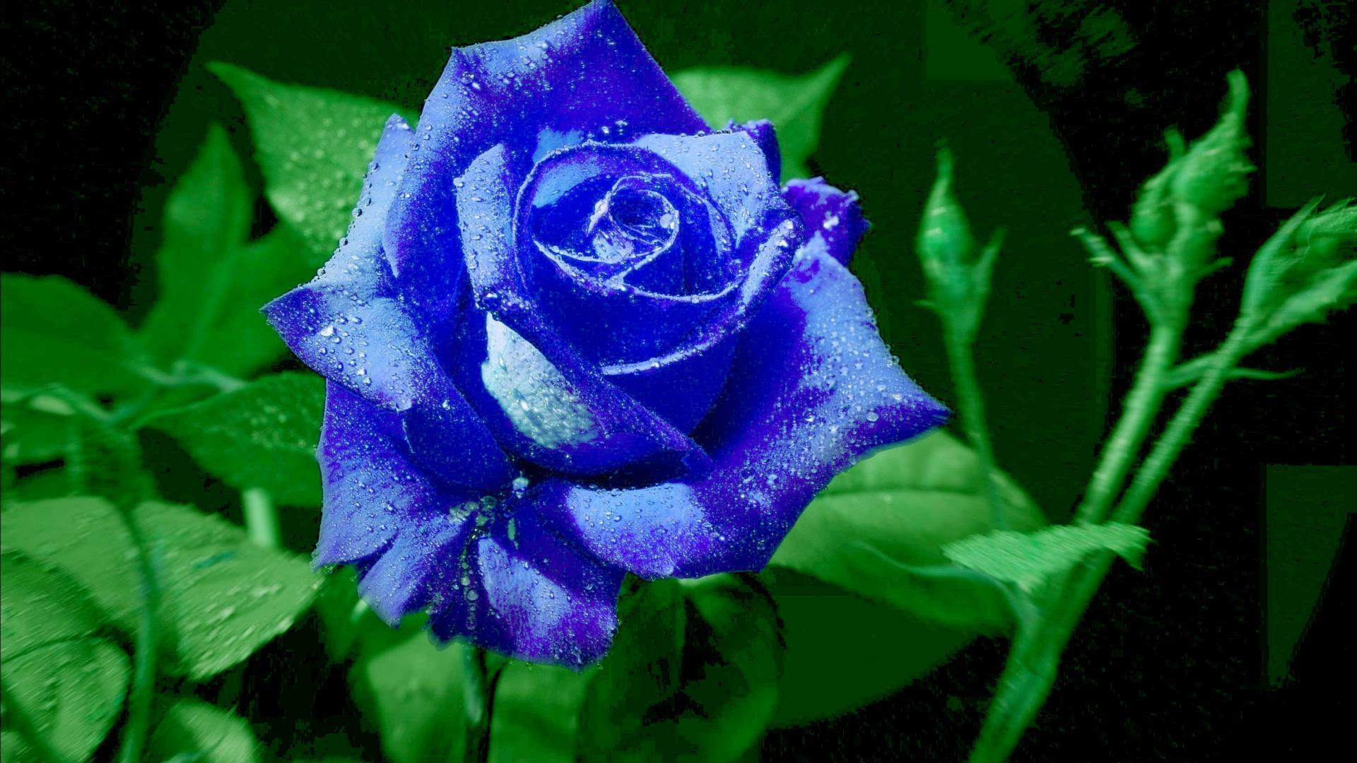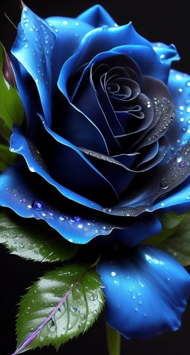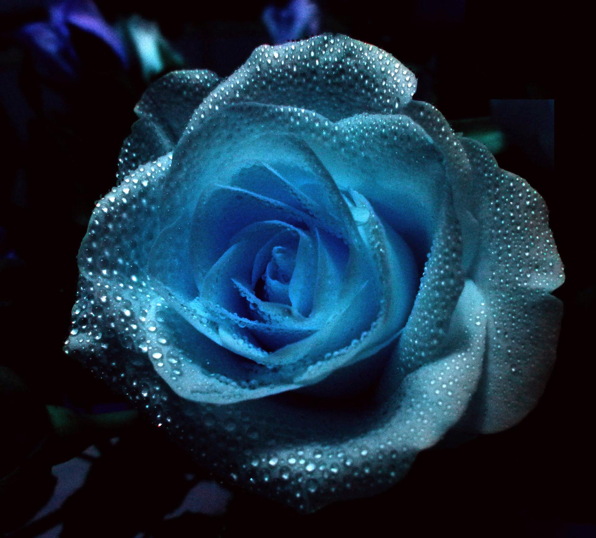 синяя роза на черном фоне