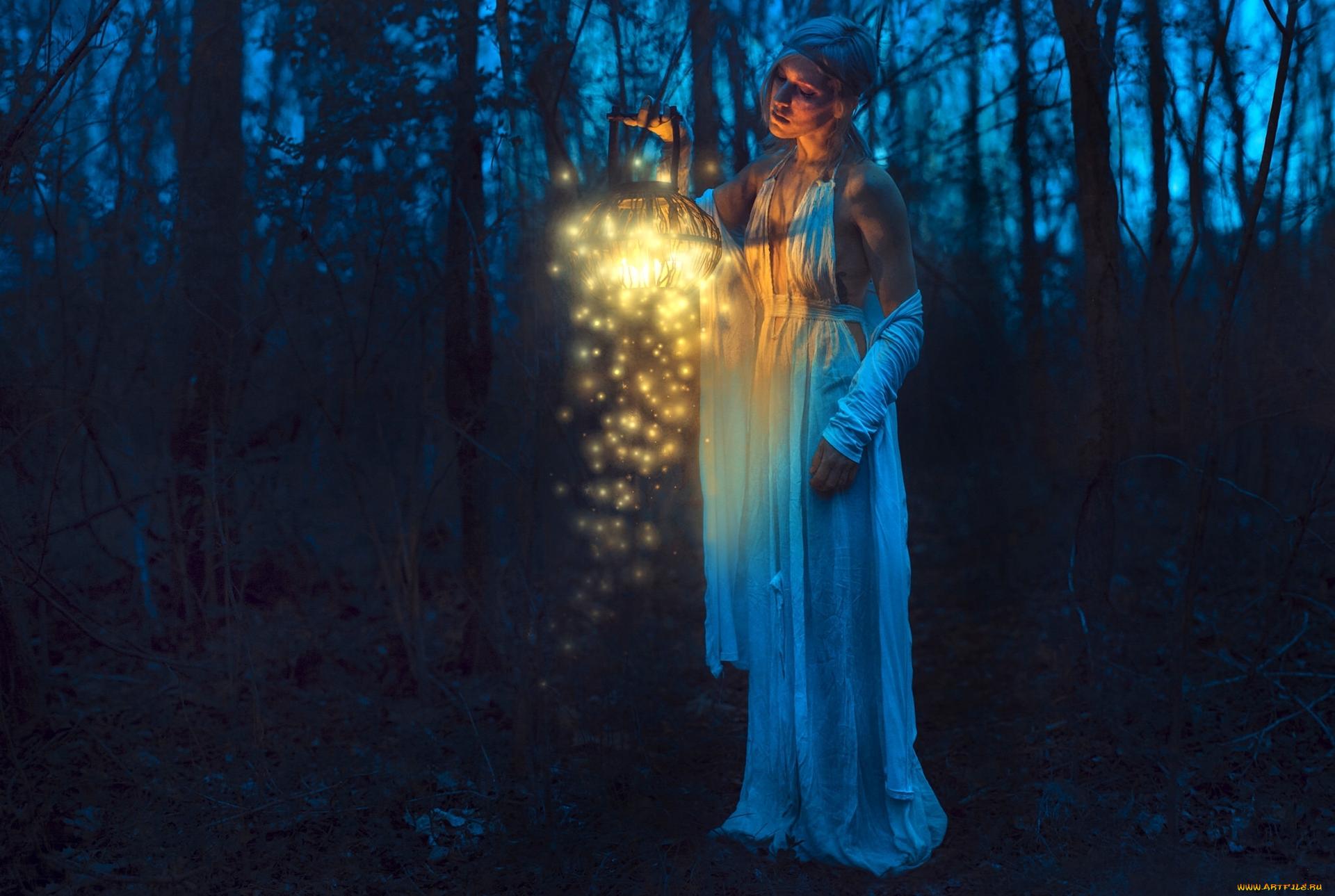 девушка с фонарем