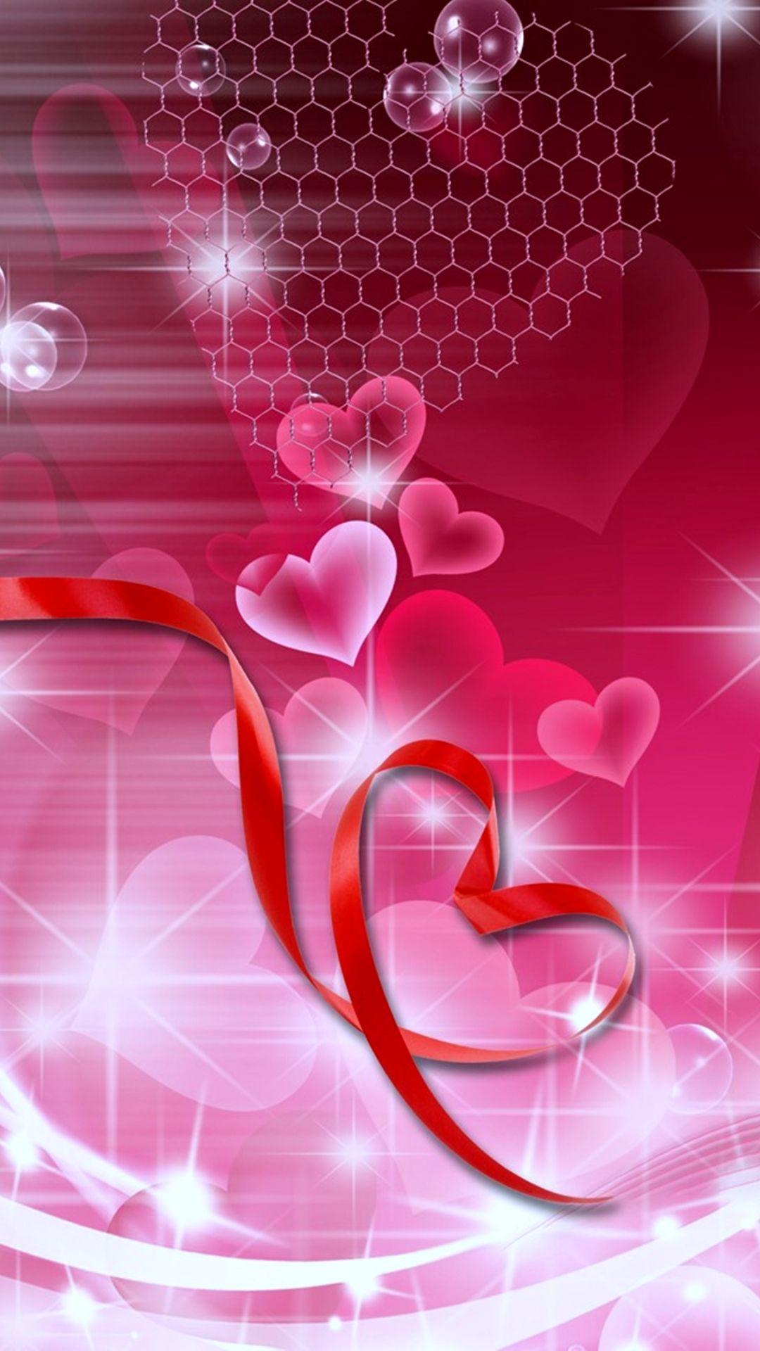обои на пк розовый сердеч