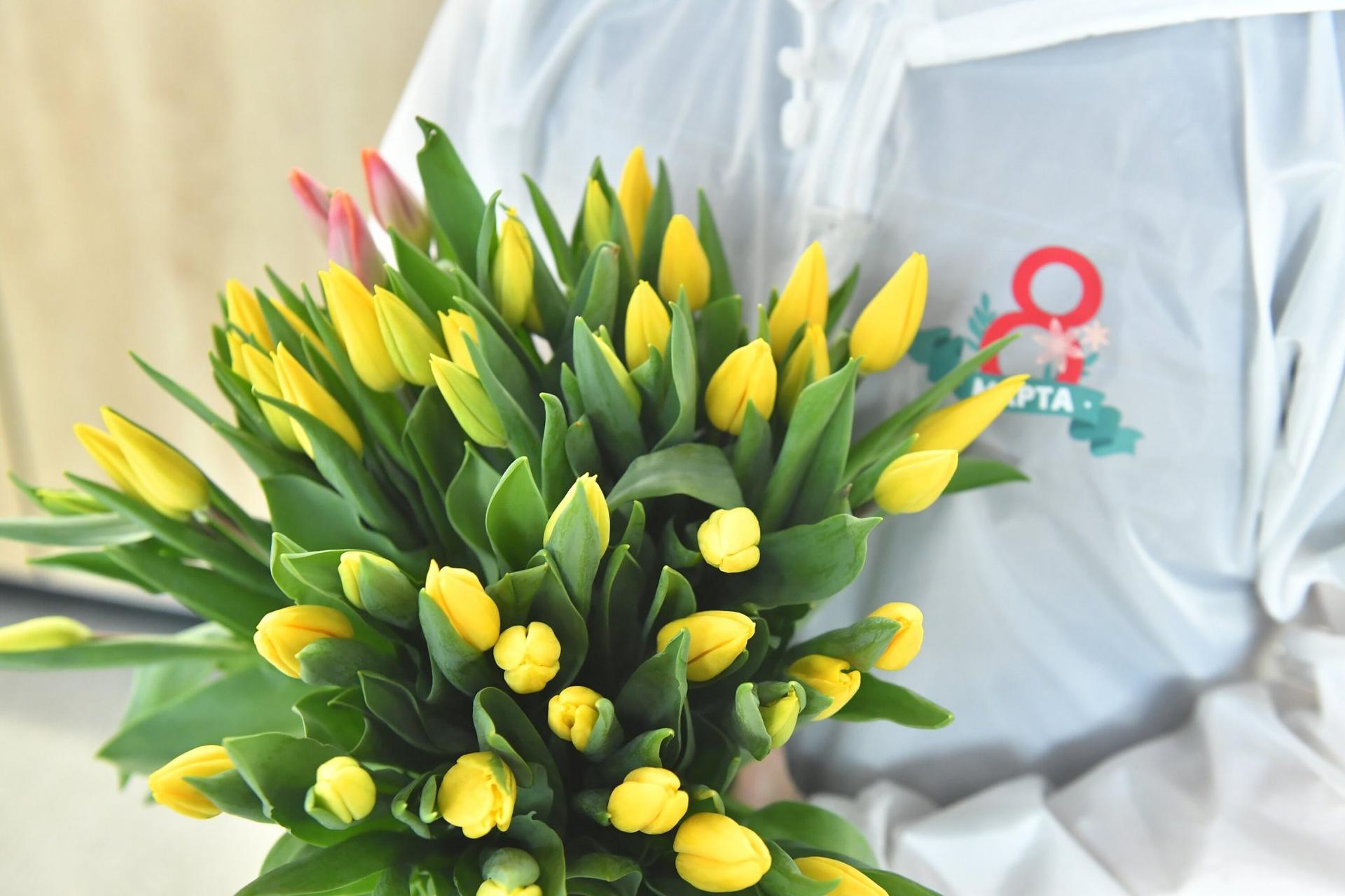 букет тюльпанов в руках