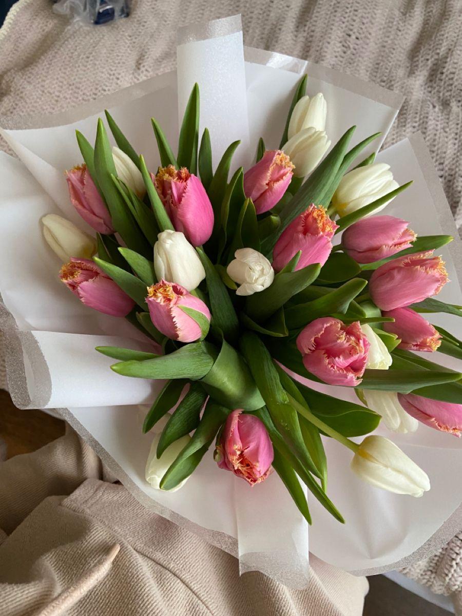 букет бело розовых тюльпанов