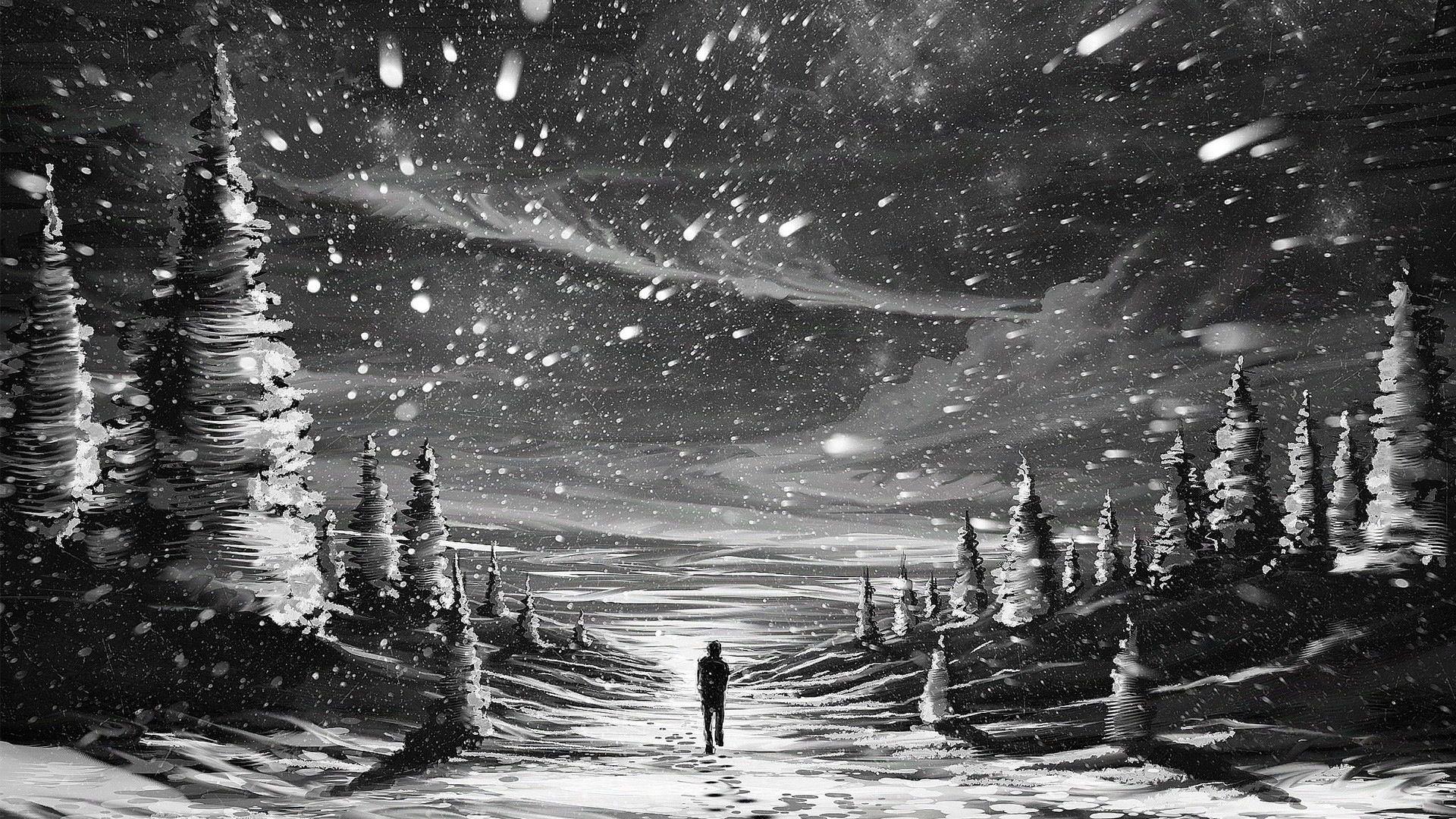 падал белый снег