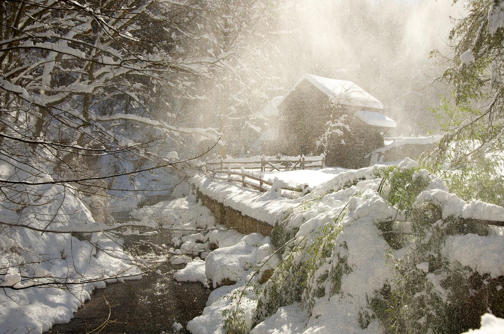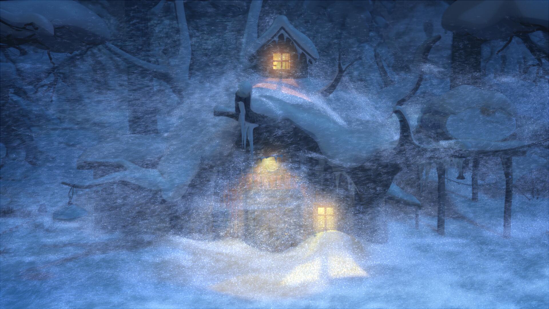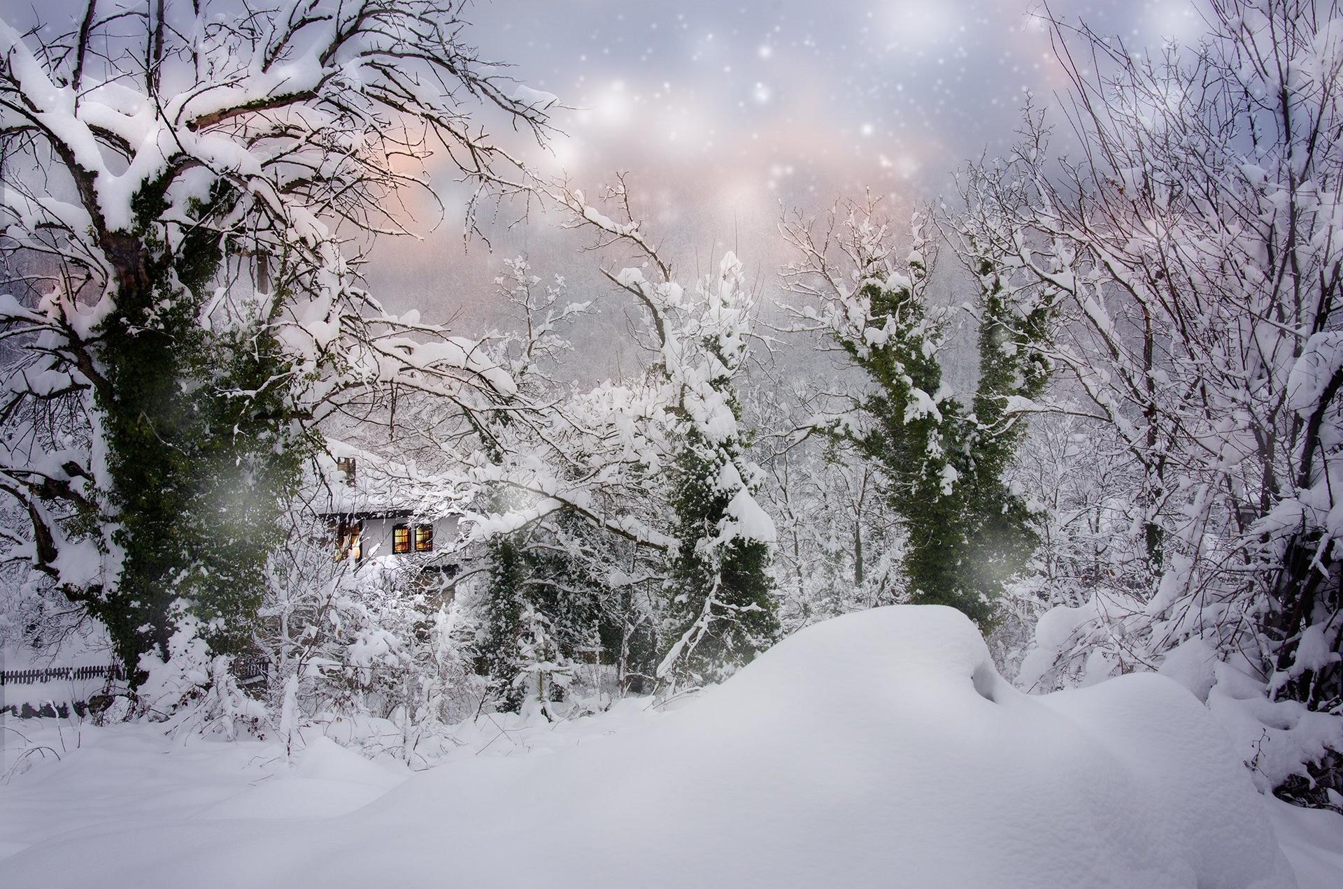 дом в заснеженном лесу