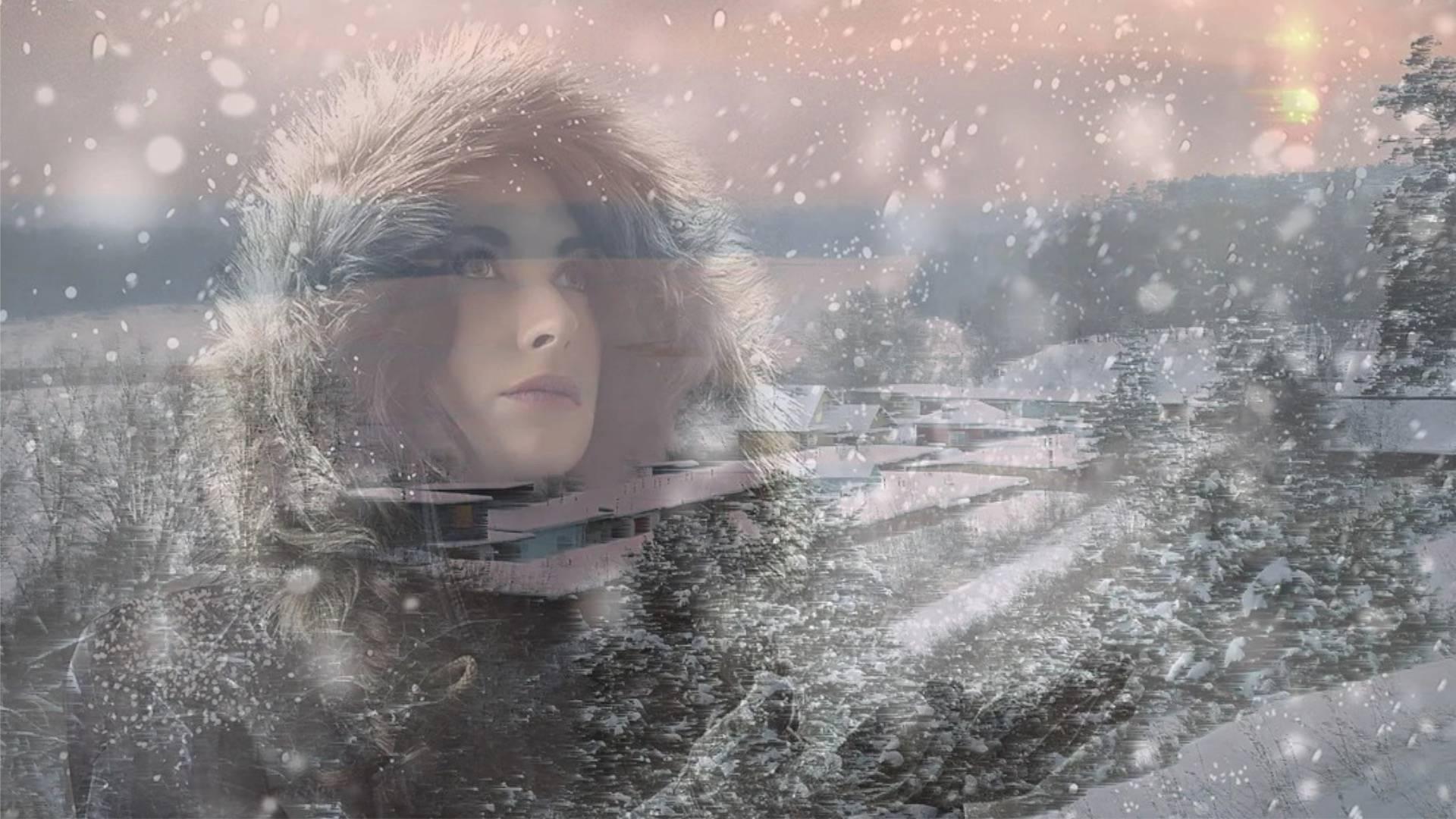 девушка под снегом