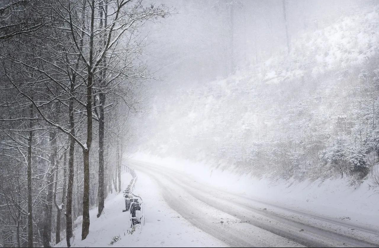 туман зимой на дороге