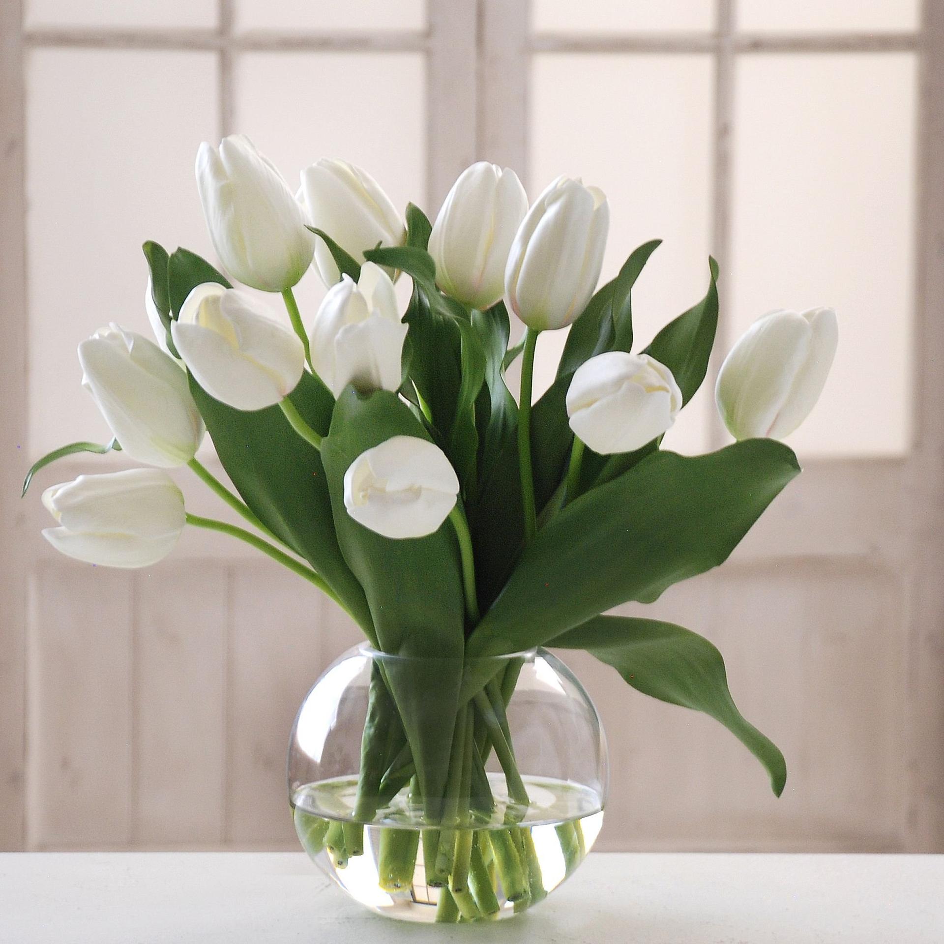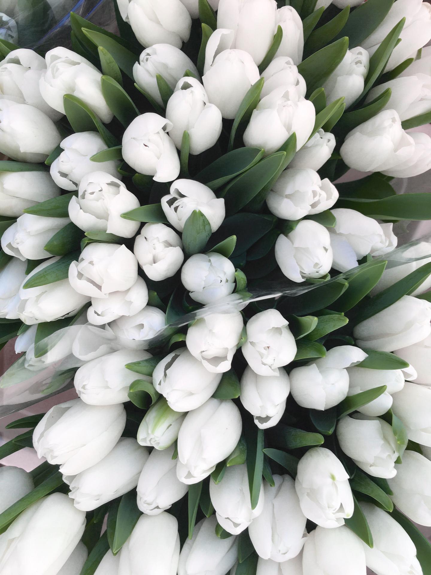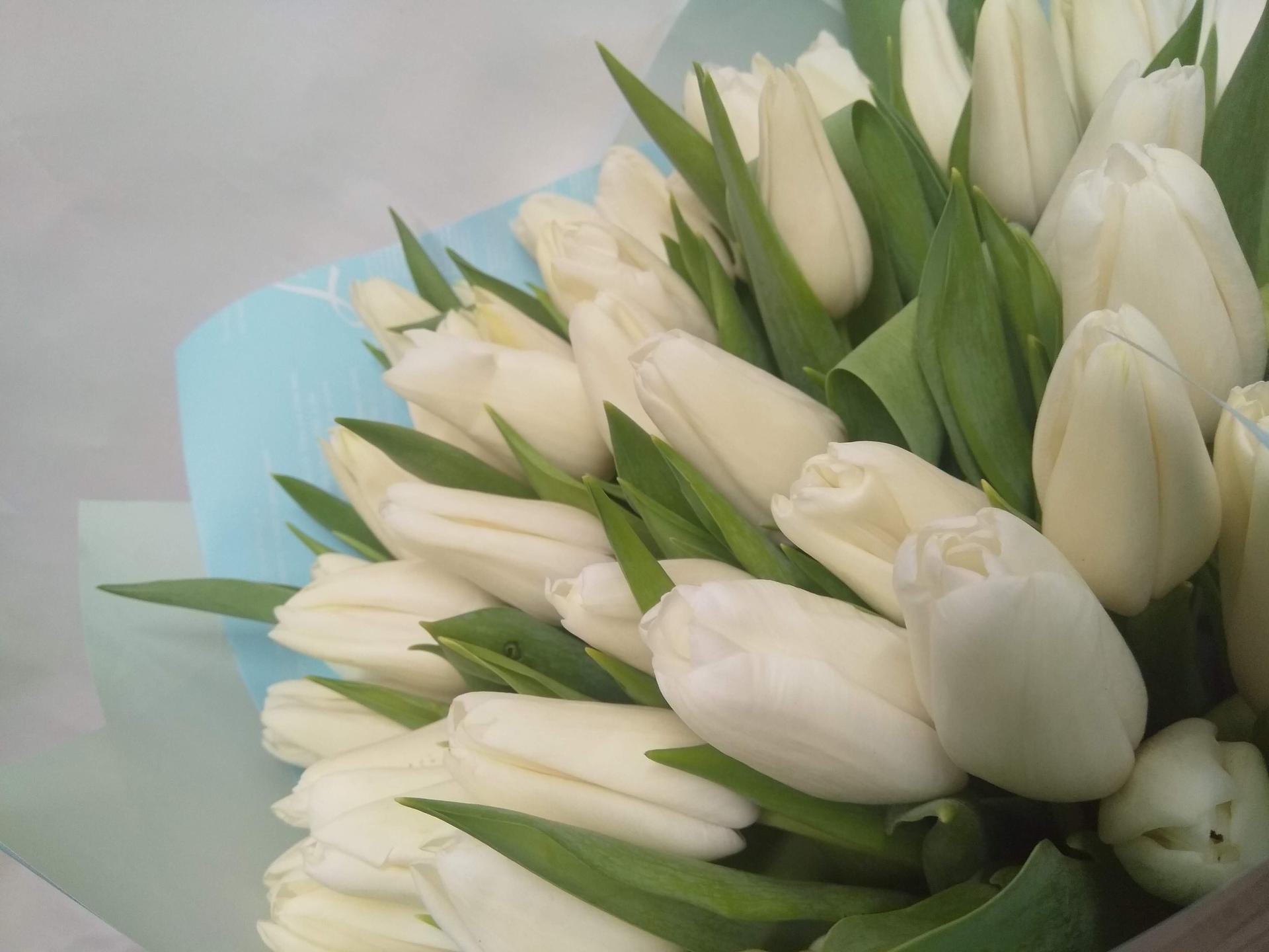 большой букет белых тюльпанов