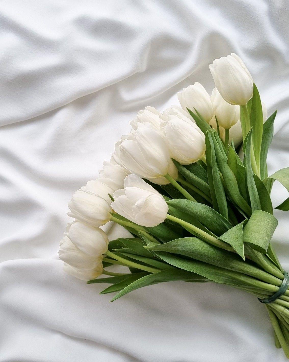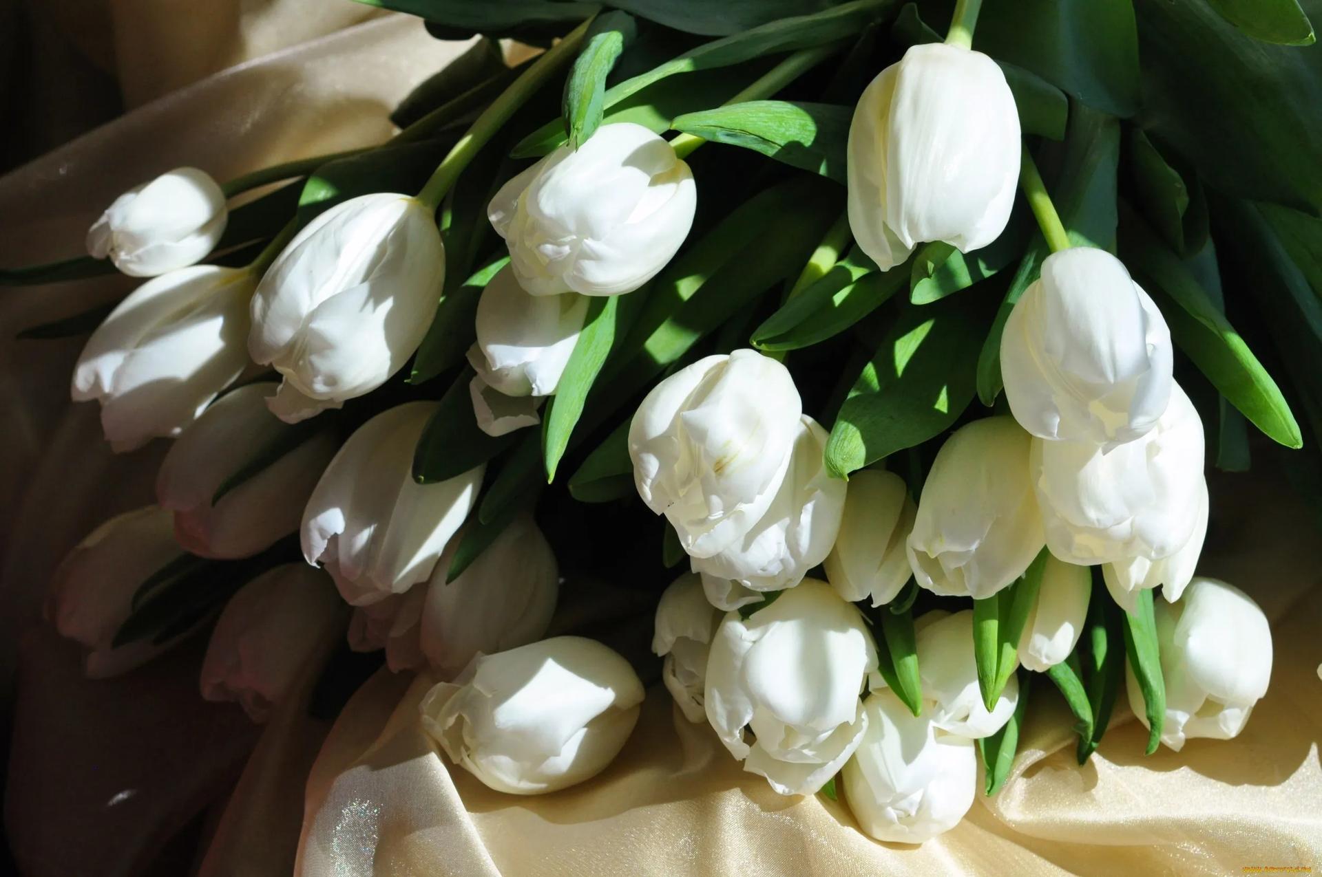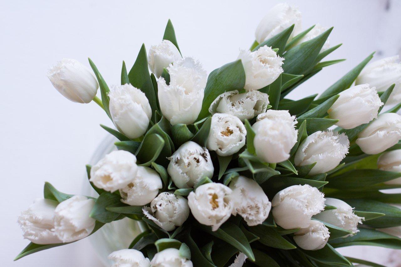 охапка белых тюльпанов