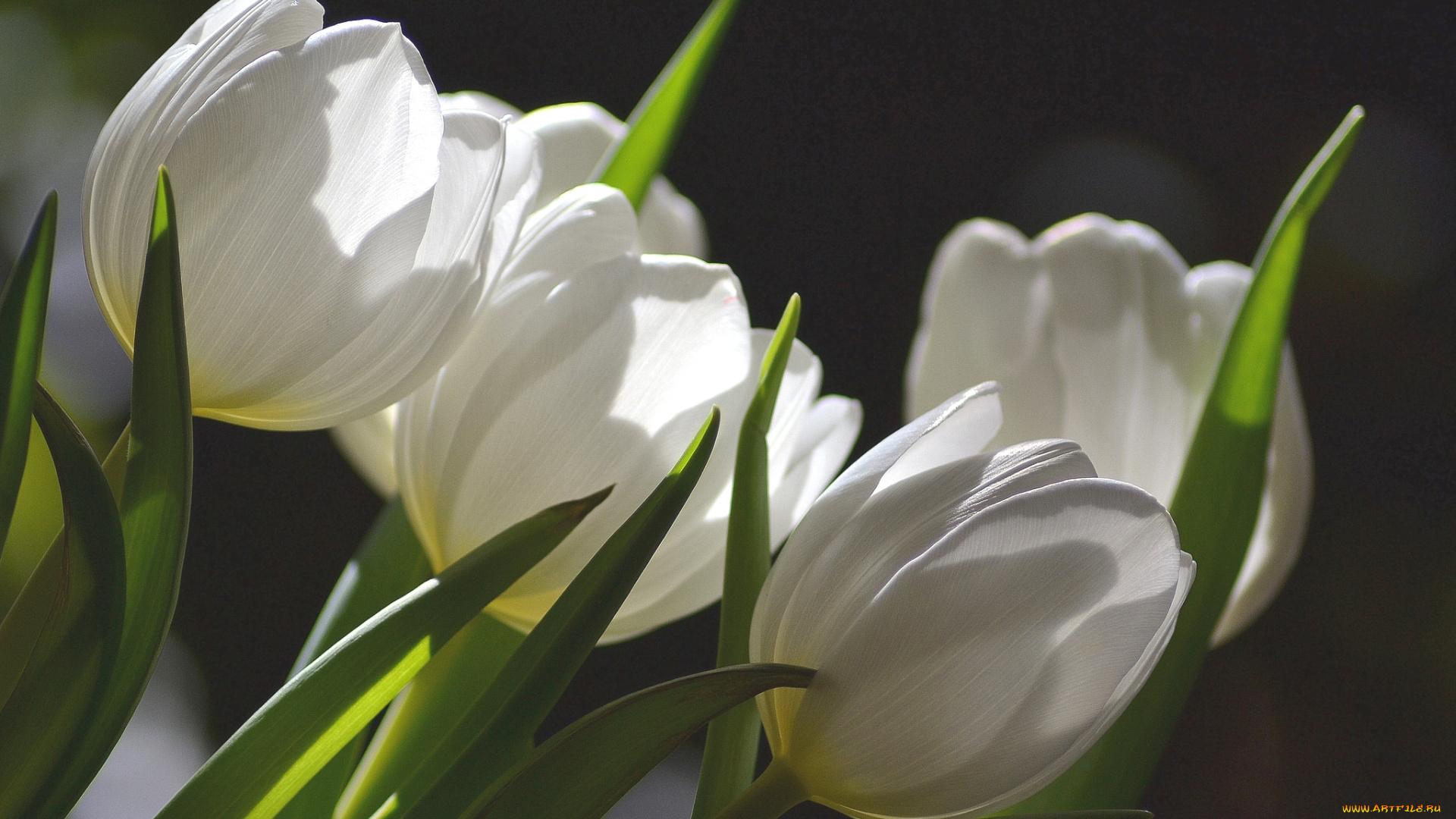 букет белых тюльпанов солнце