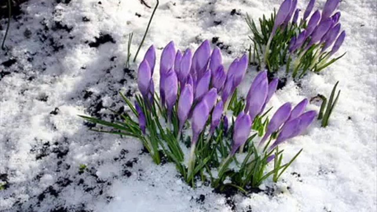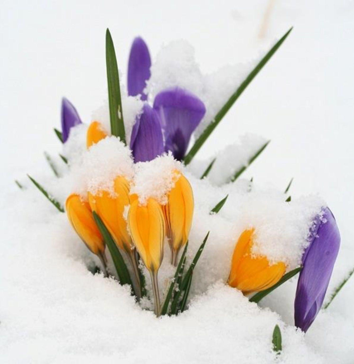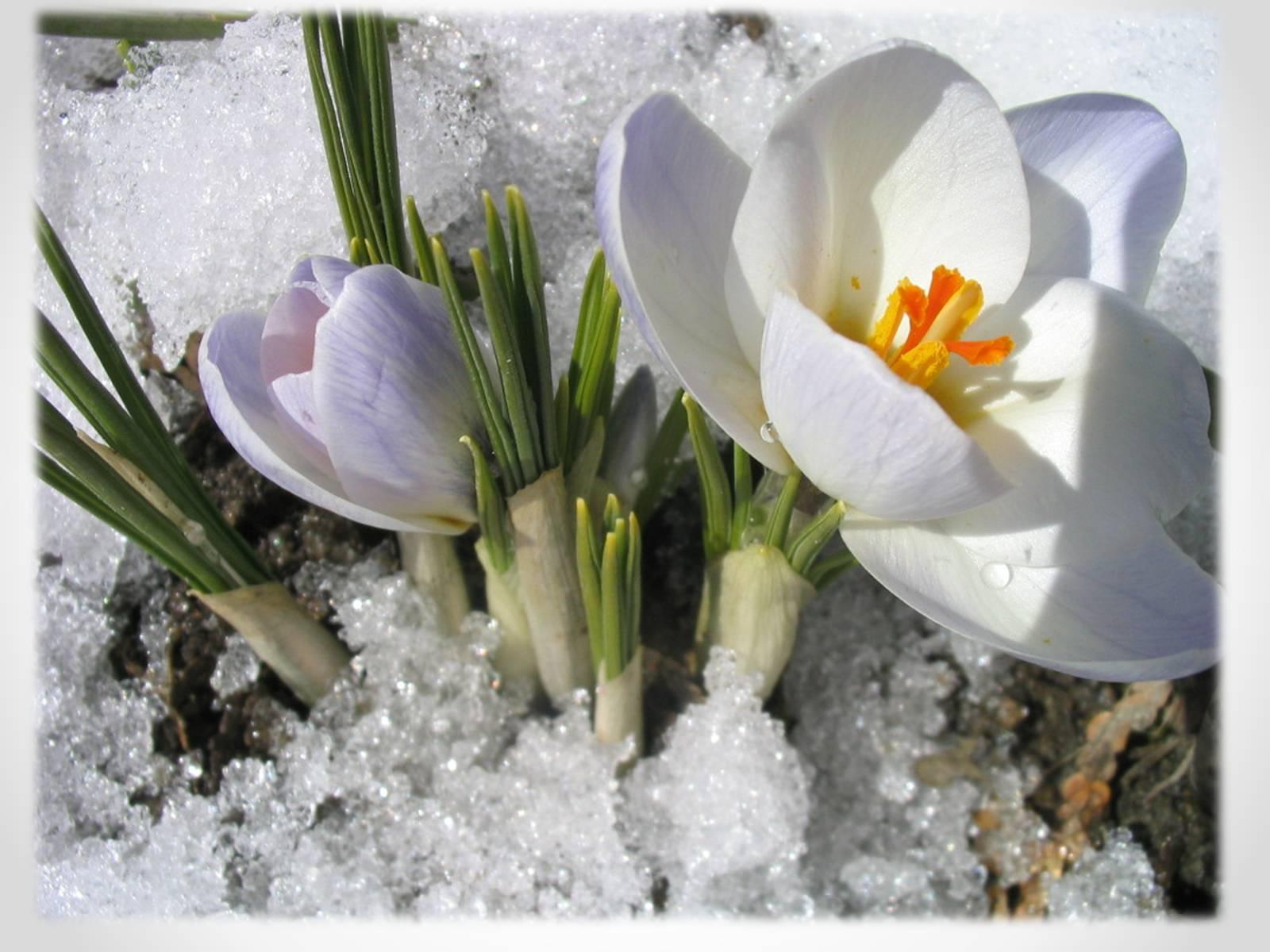 первоцветы в снегу
