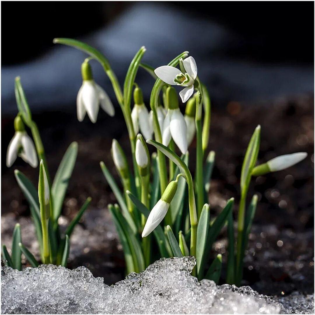 подснежники в снегу