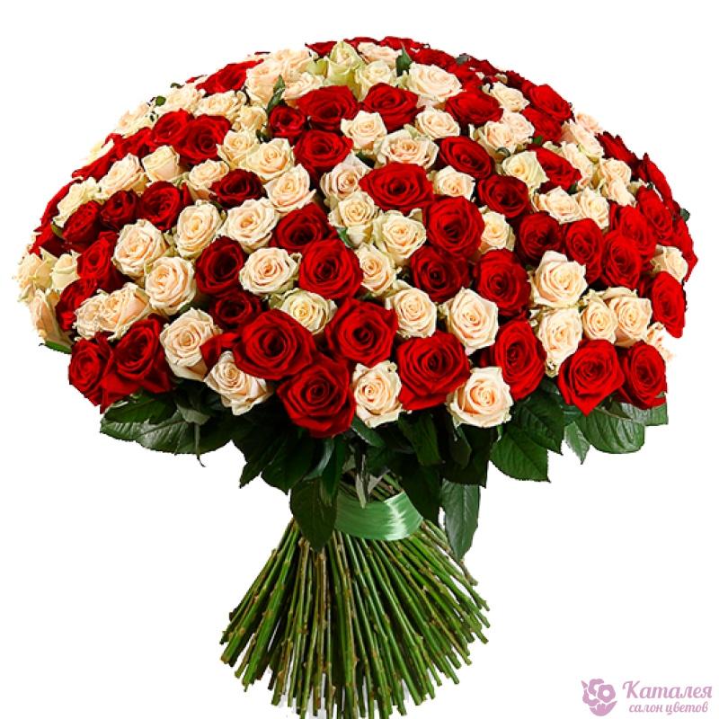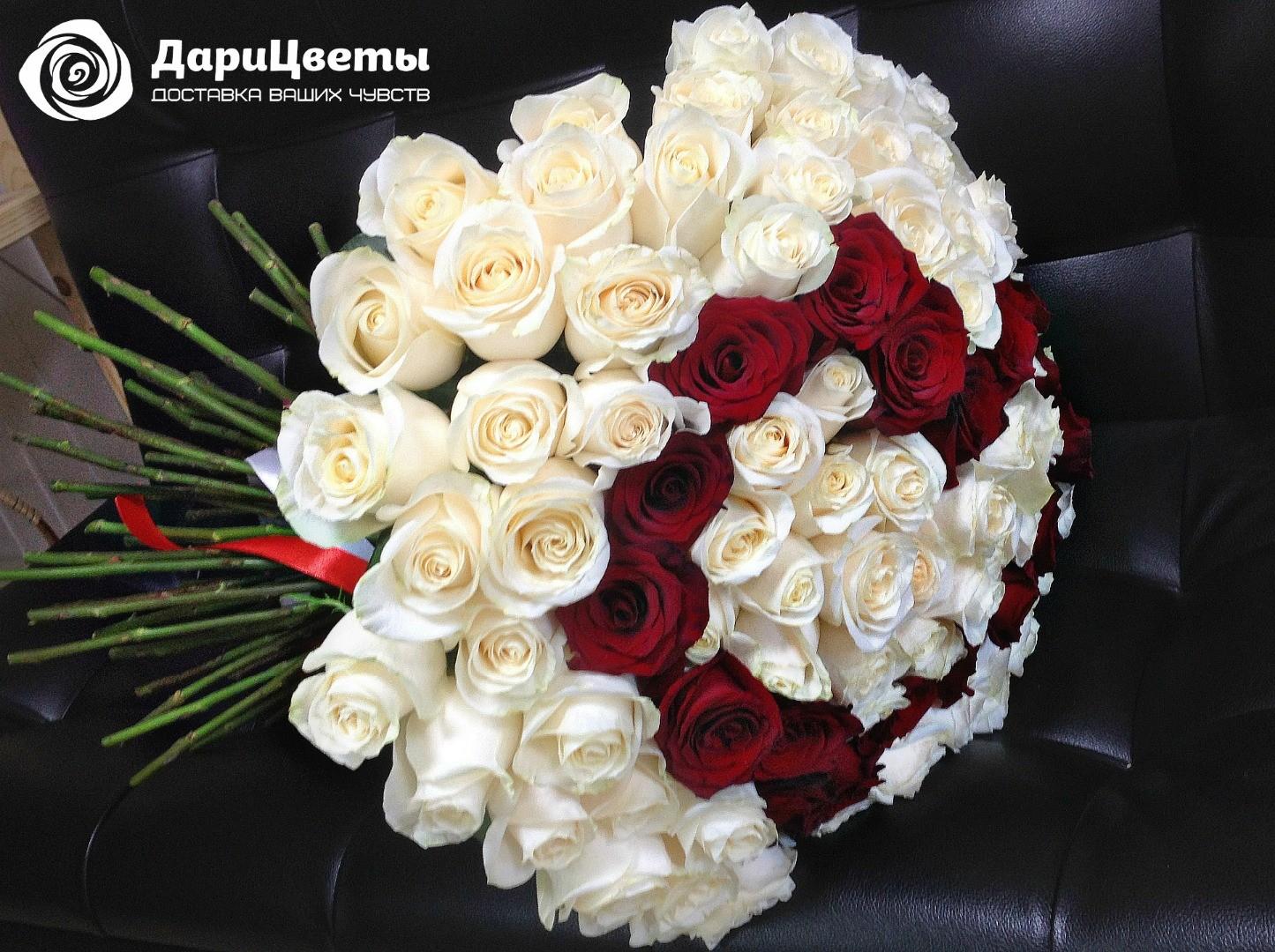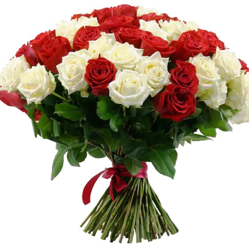 букет 101 роза белокрасные 60см
