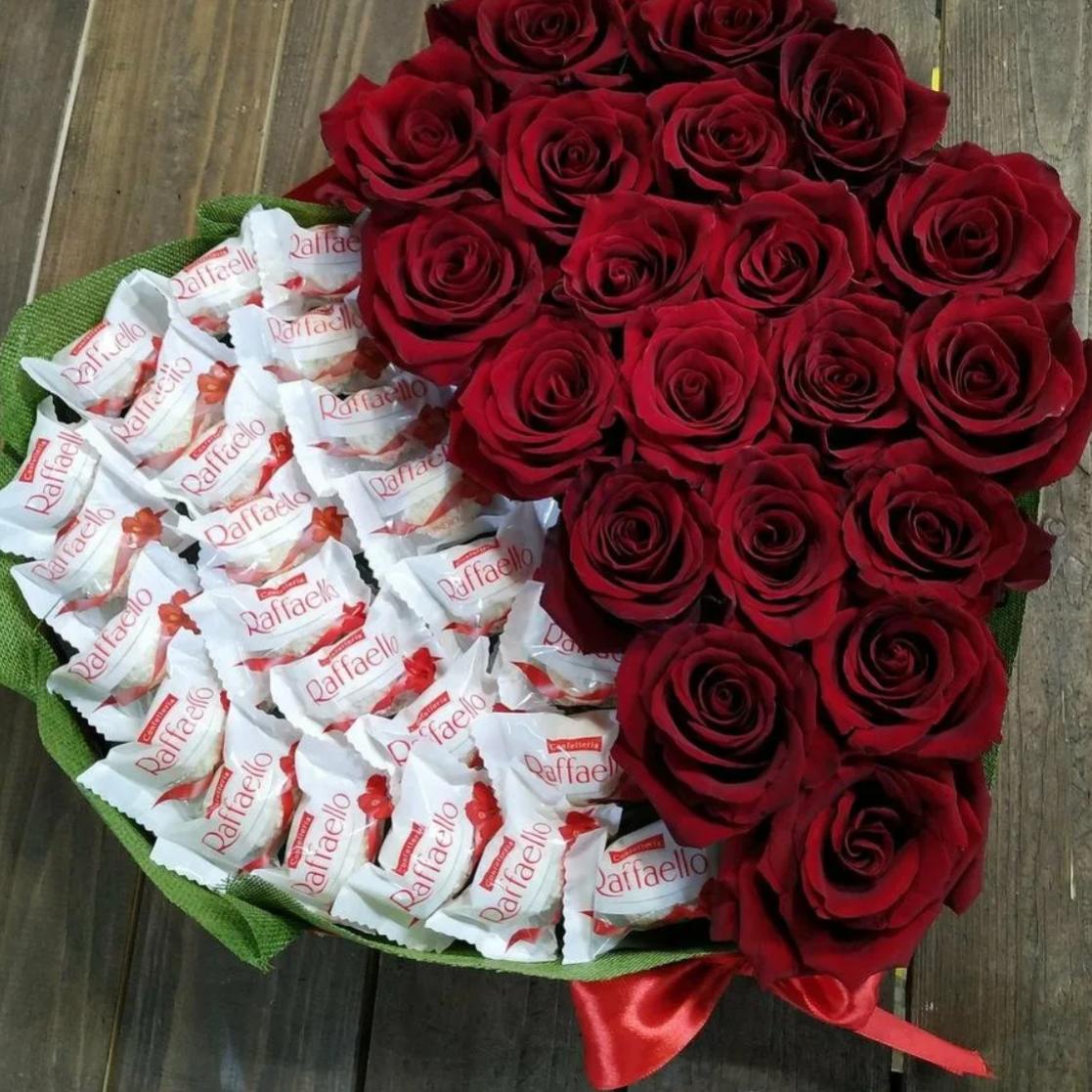 коробка с розами и рафаэлло