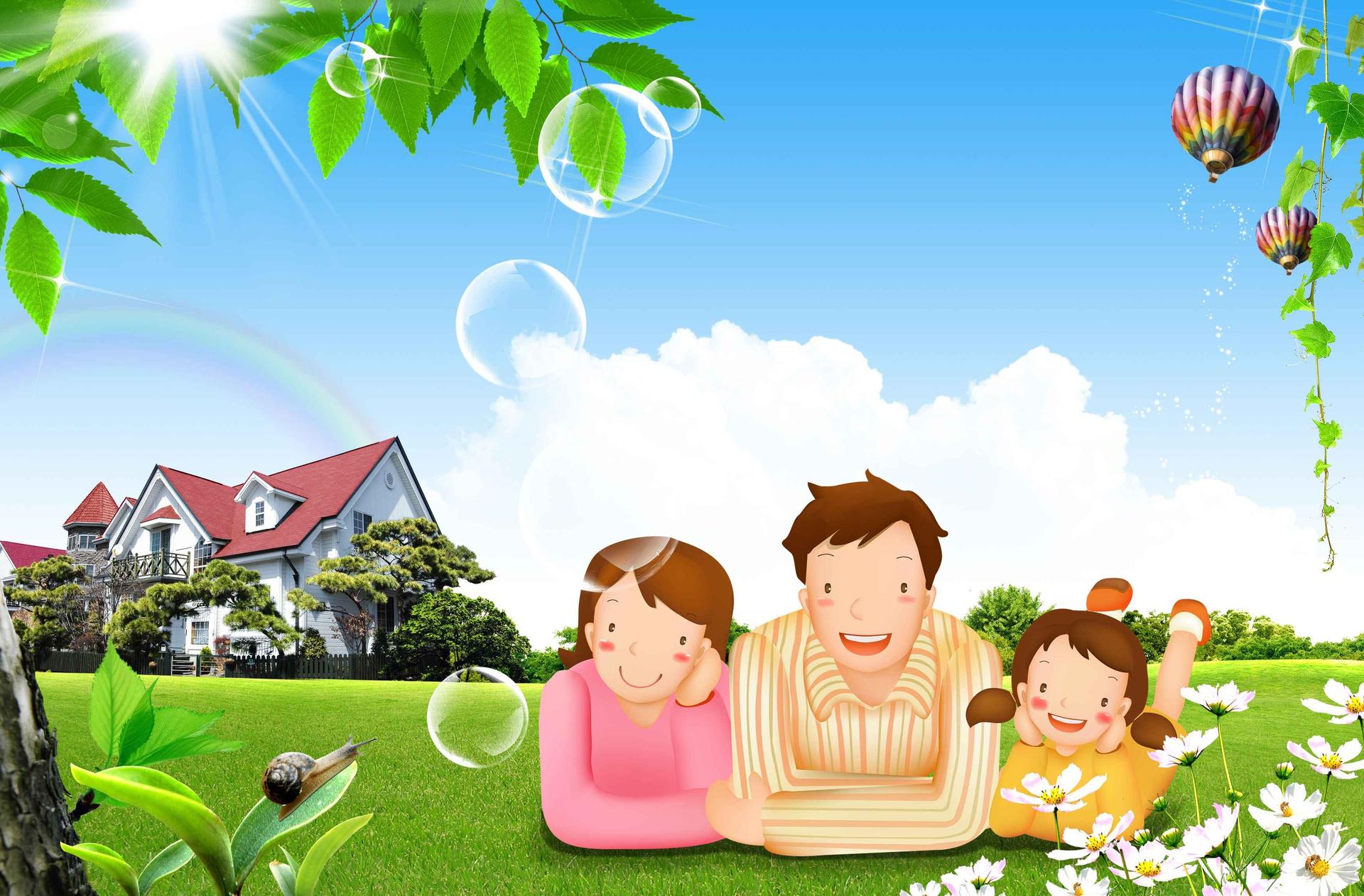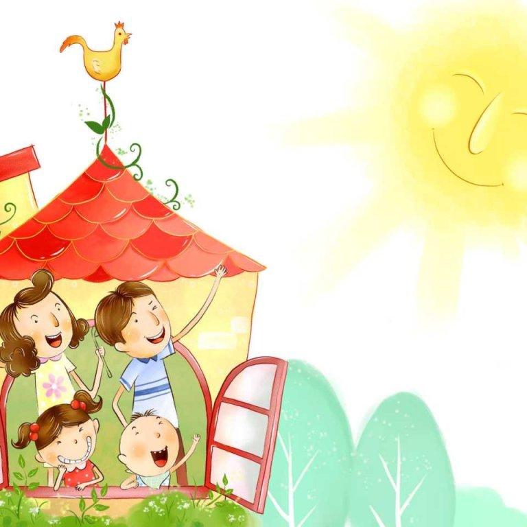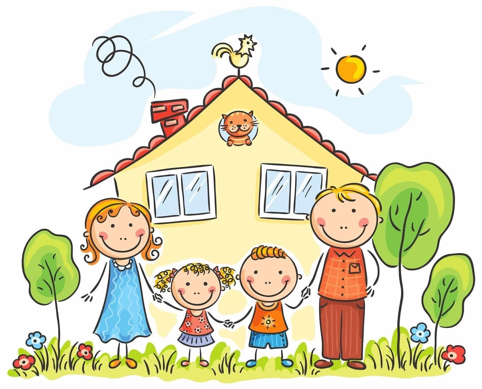 мультяшный домик с семьей