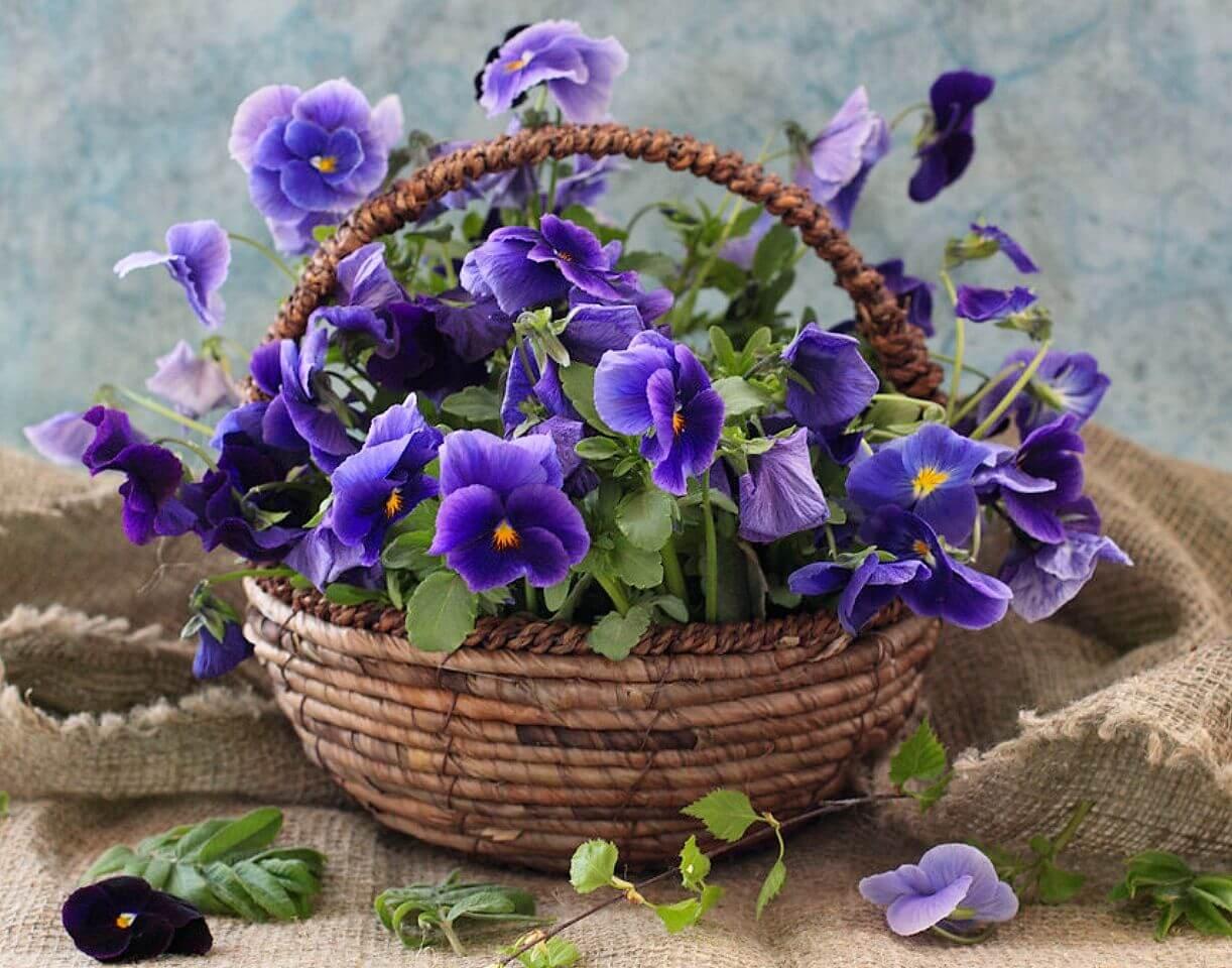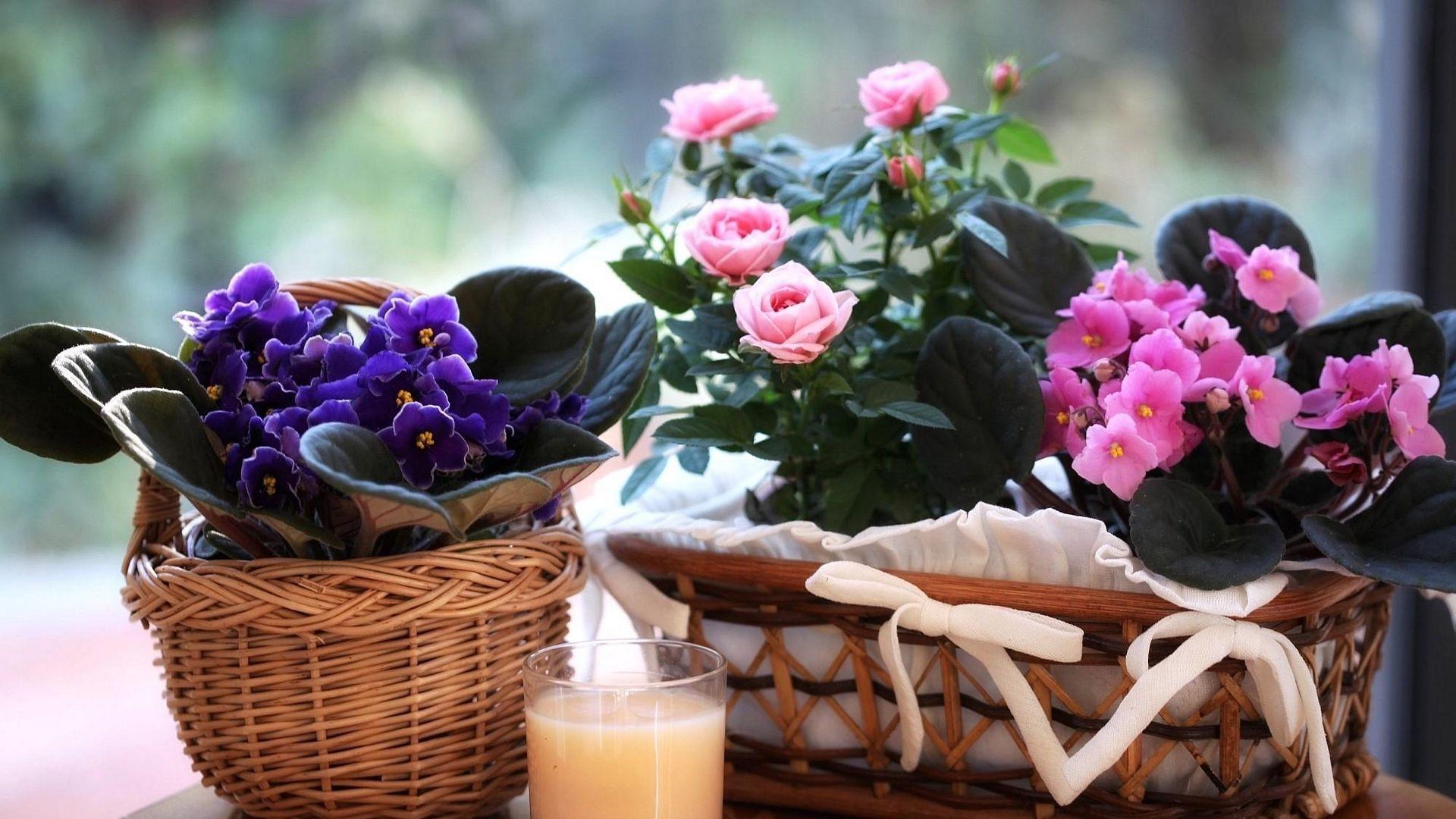 фиалки в корзине