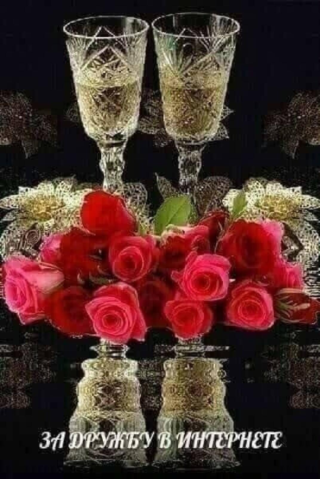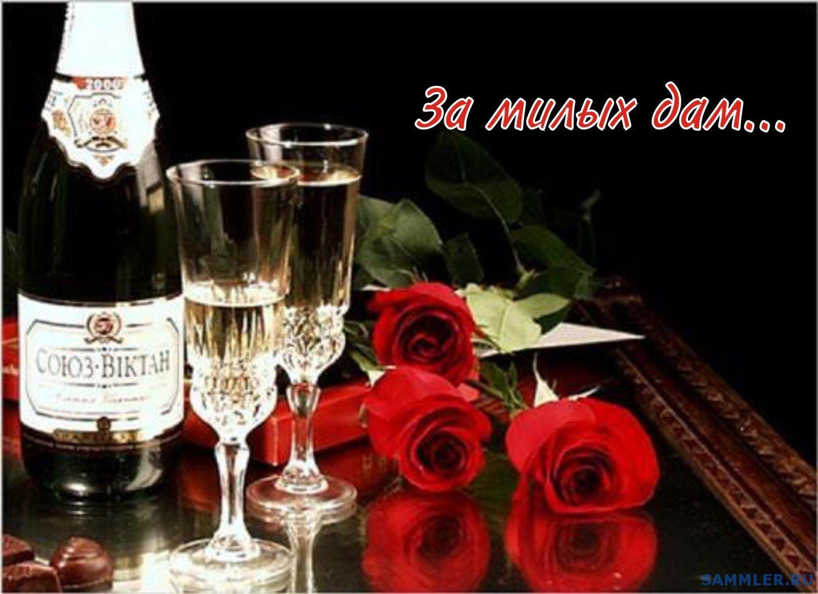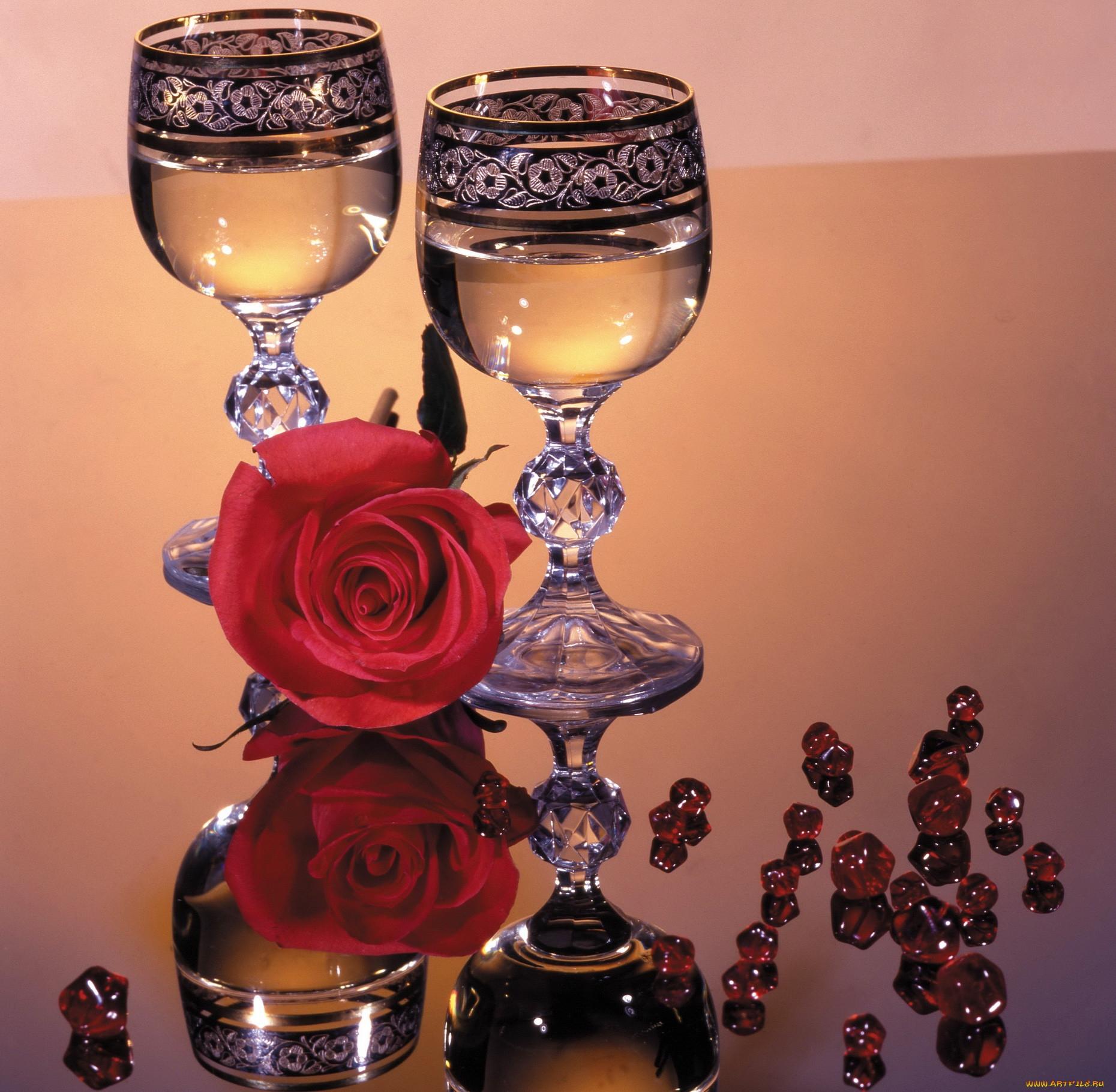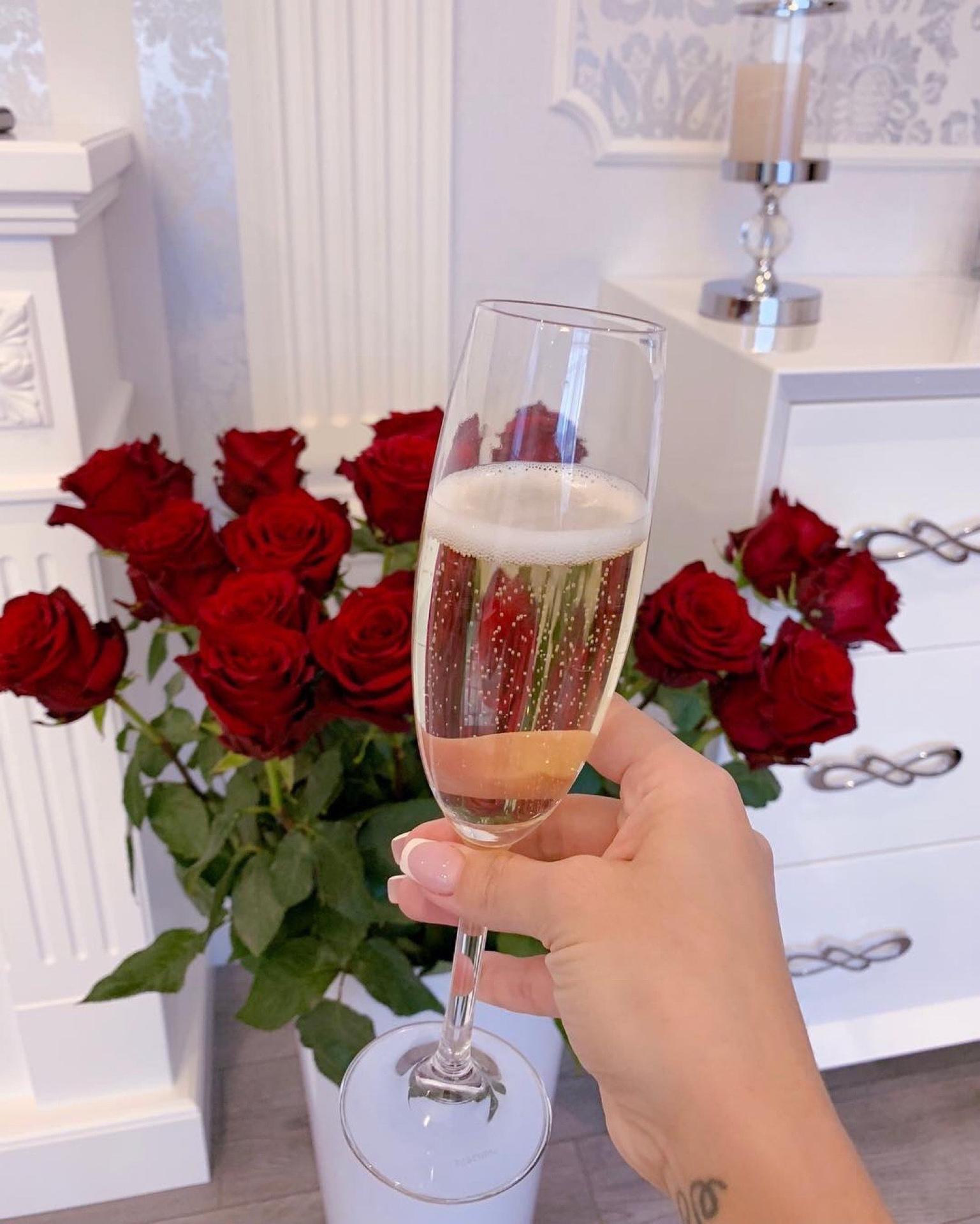 шампанское бокал розы