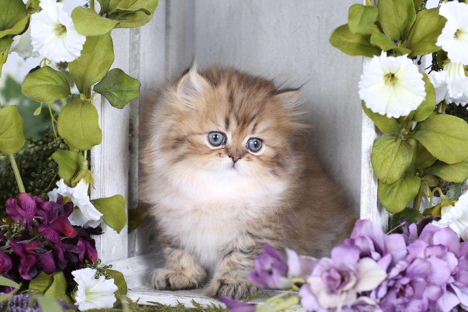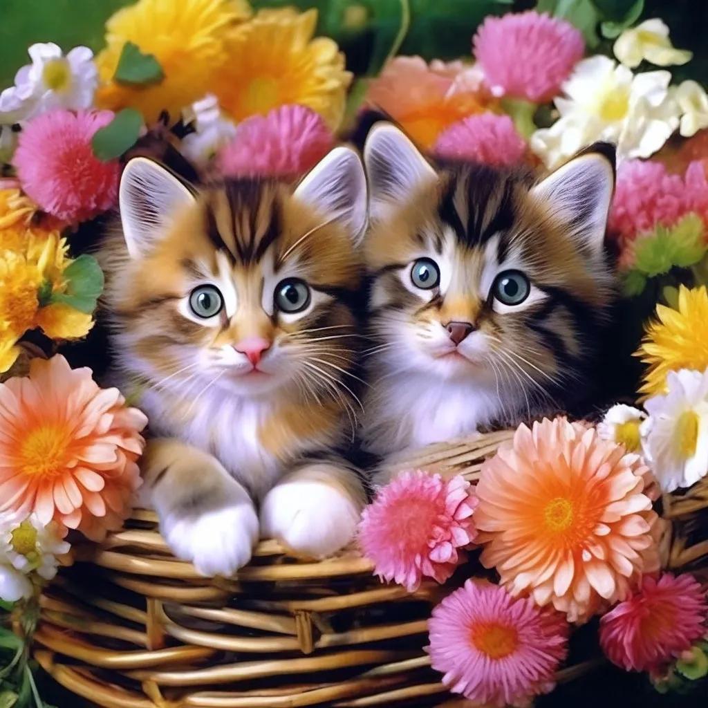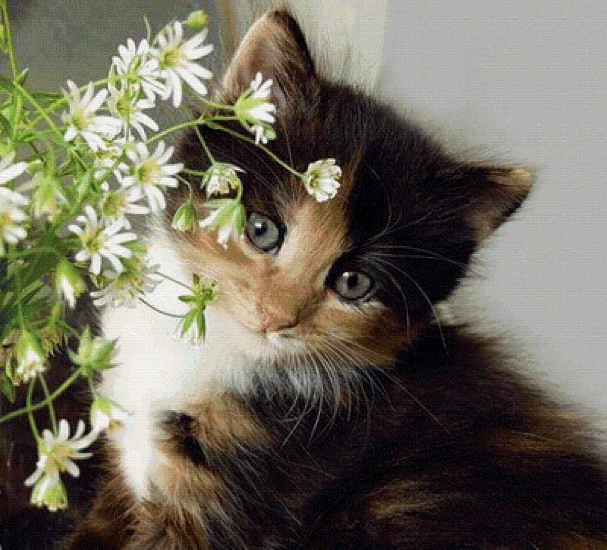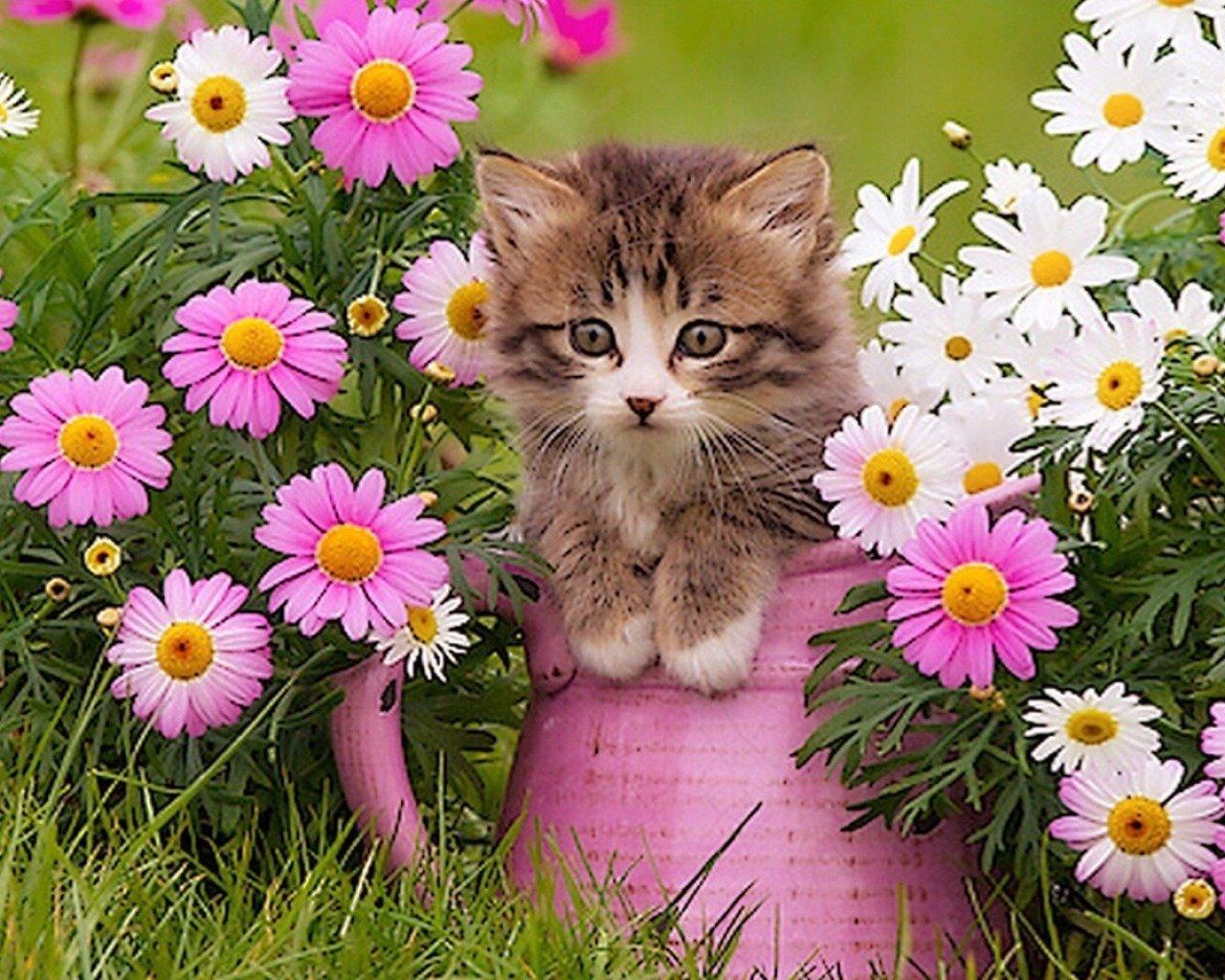 Котят с цветами