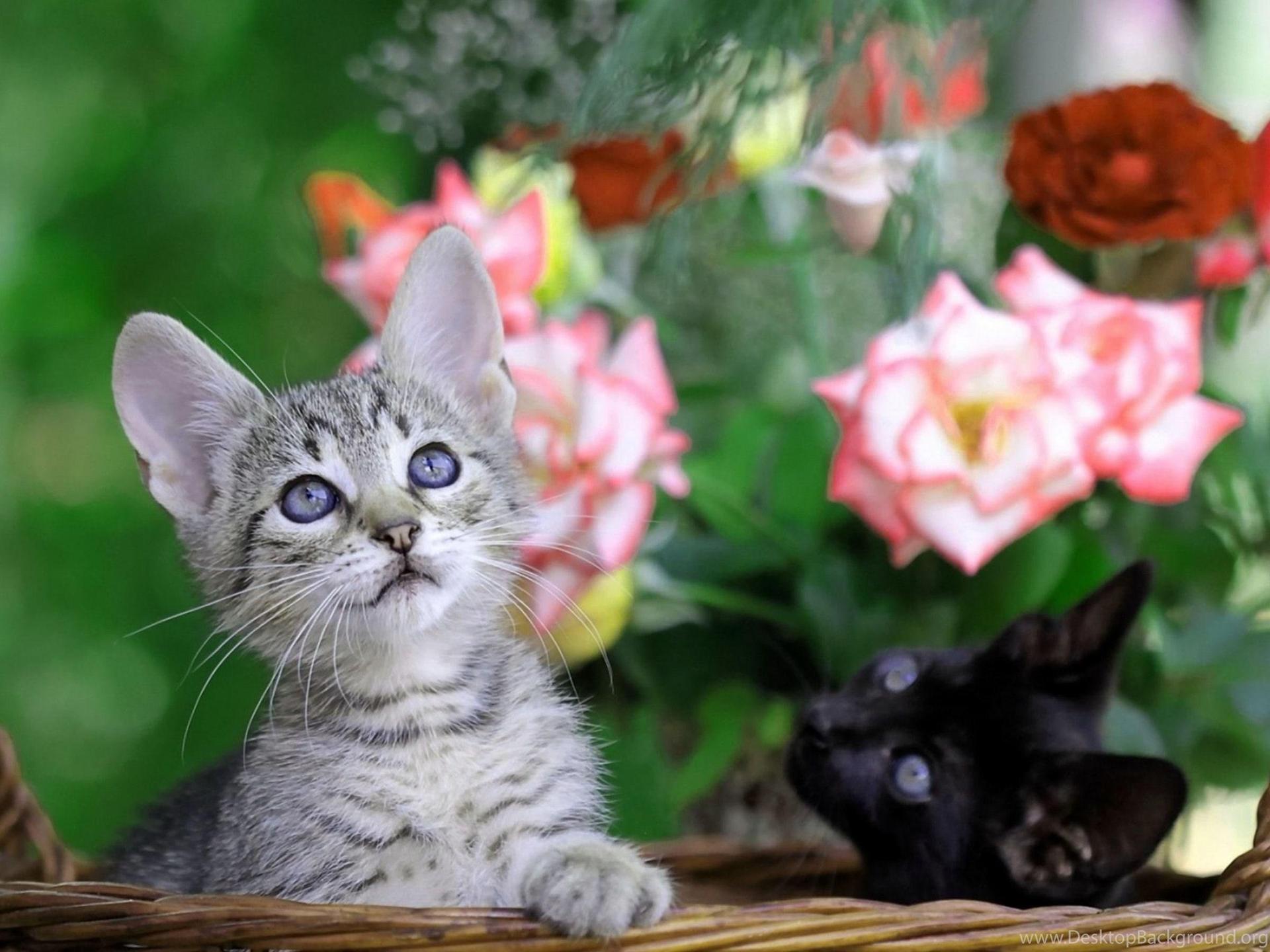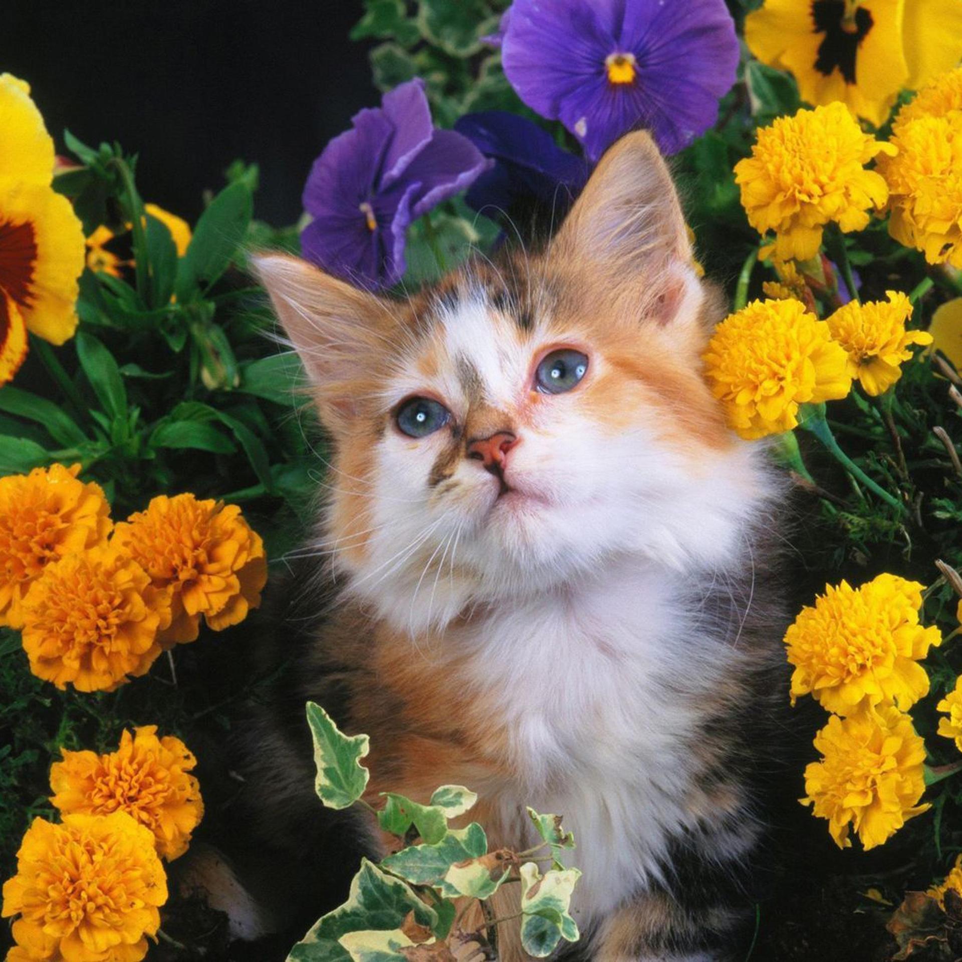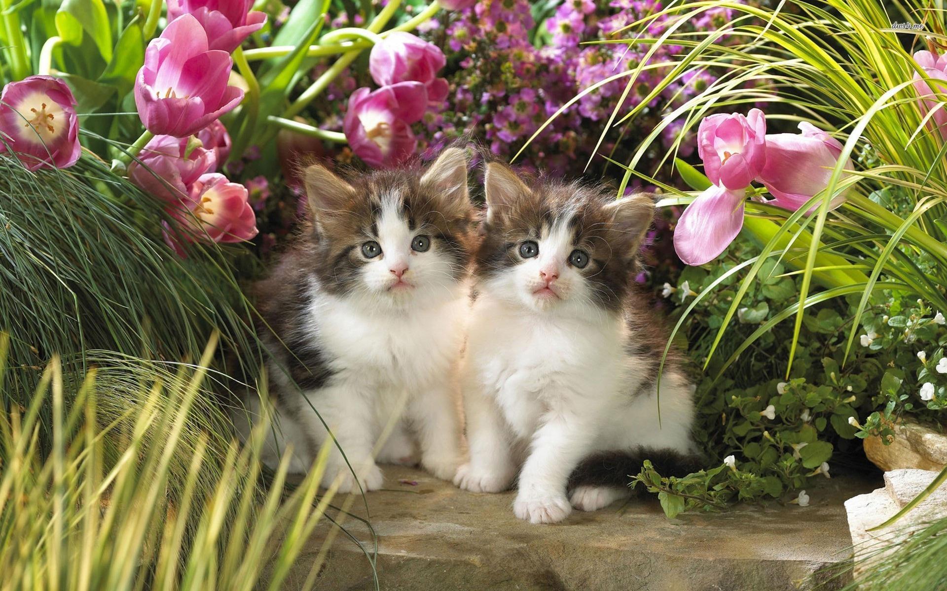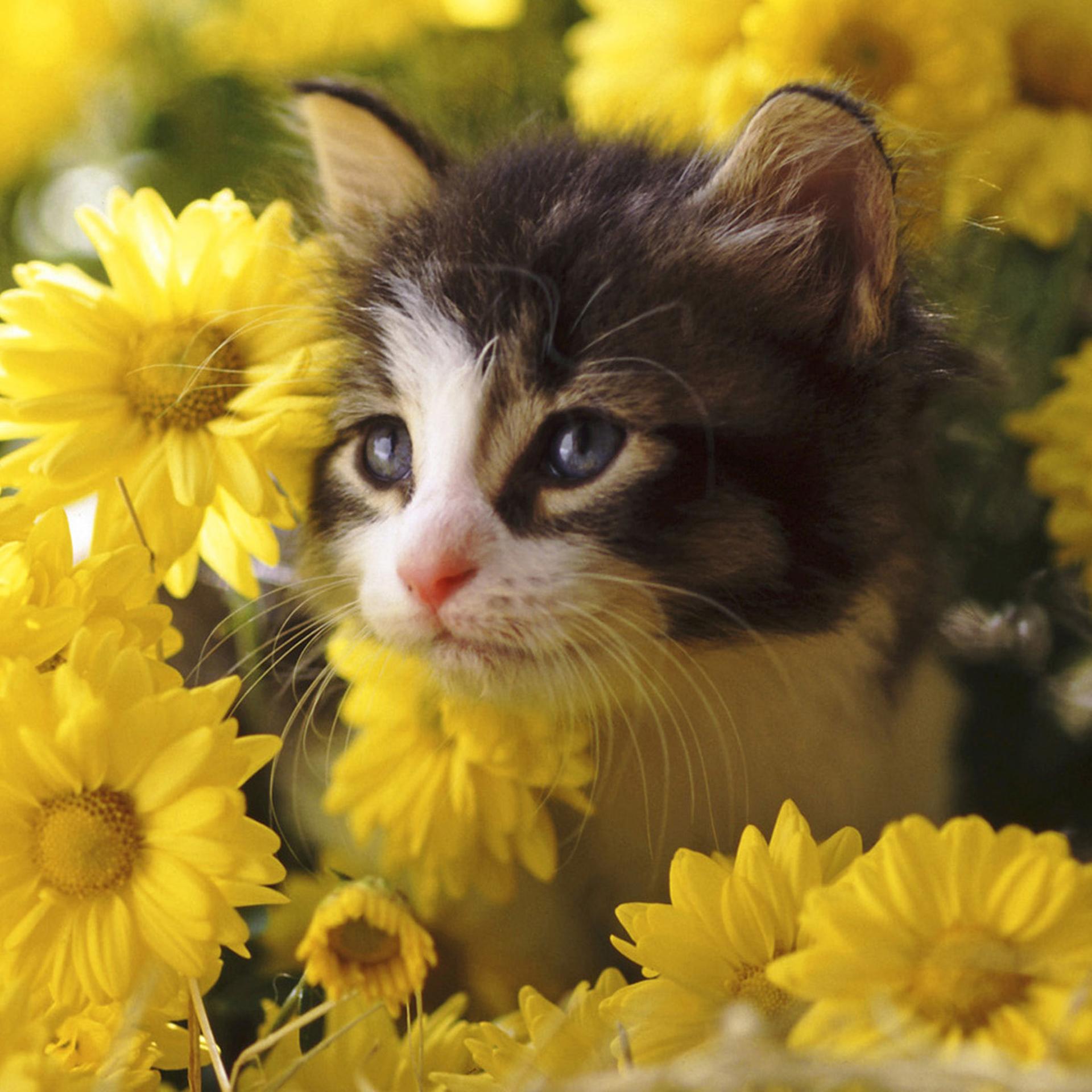 Котят с цветами