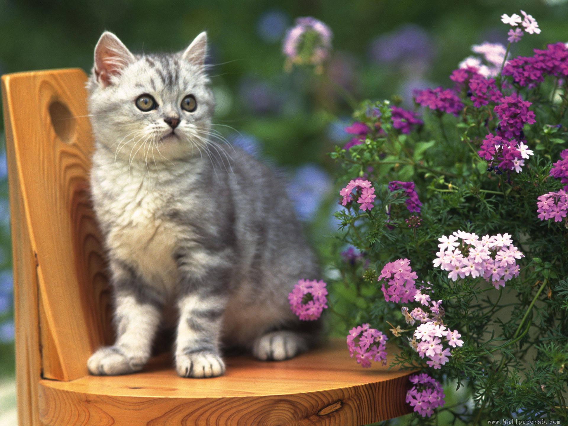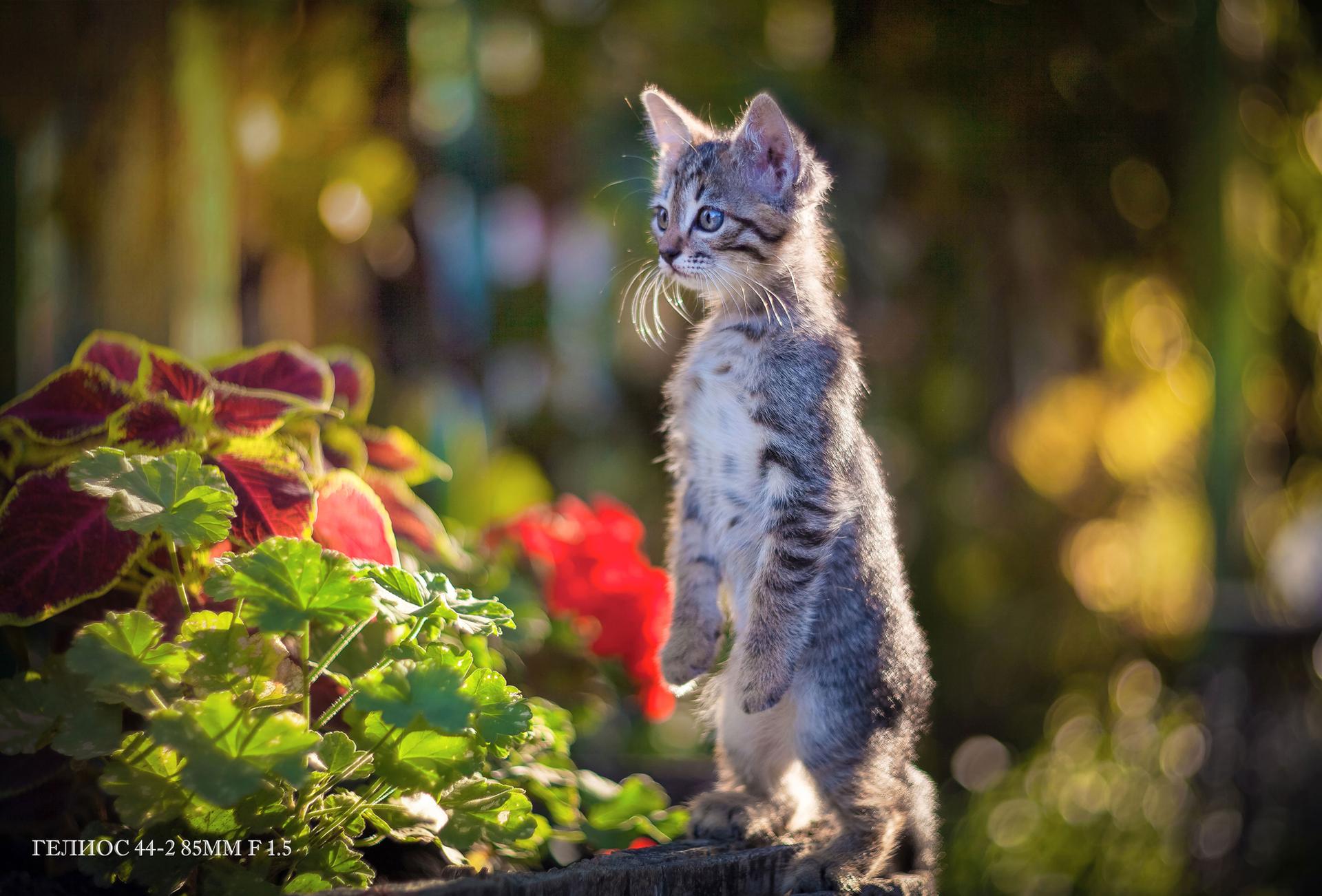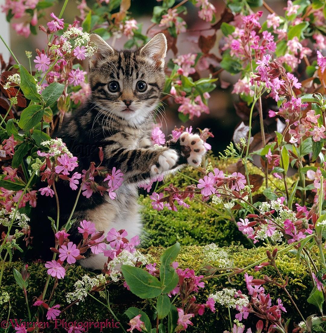 котенок в цветах