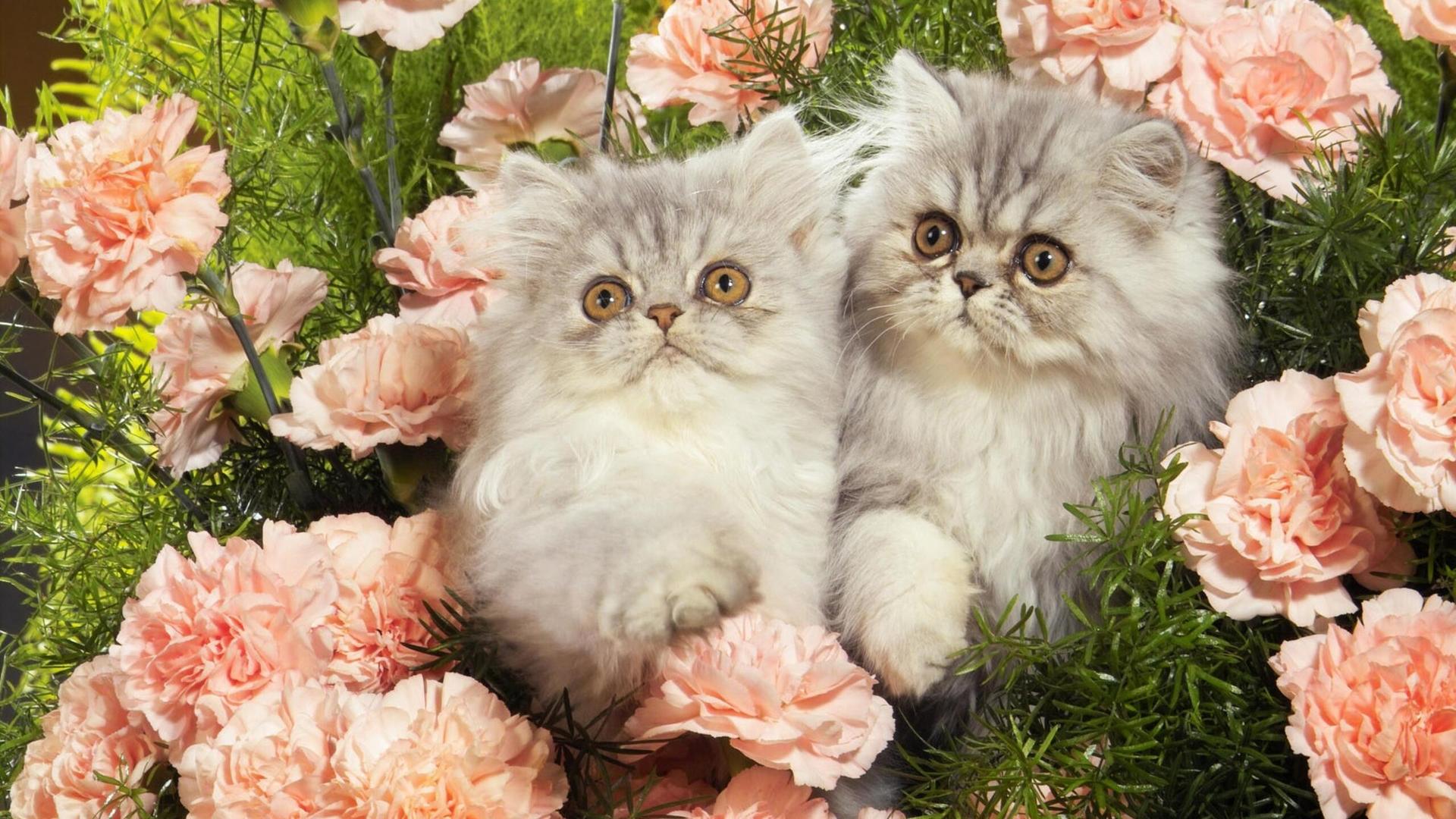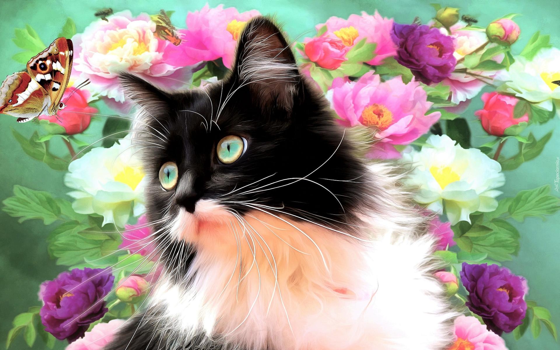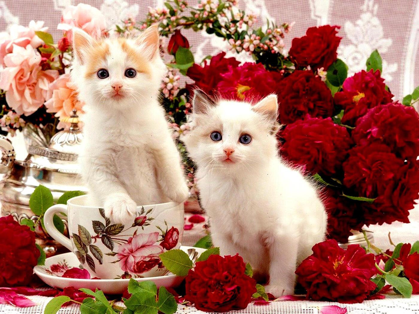 красивые цветы и кошки
