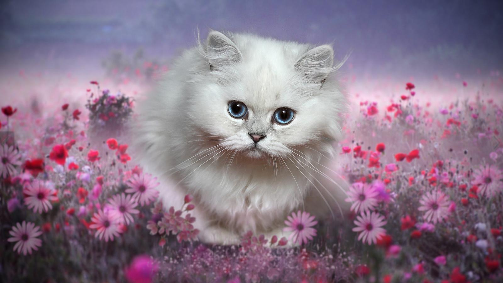 кошечка в цветах