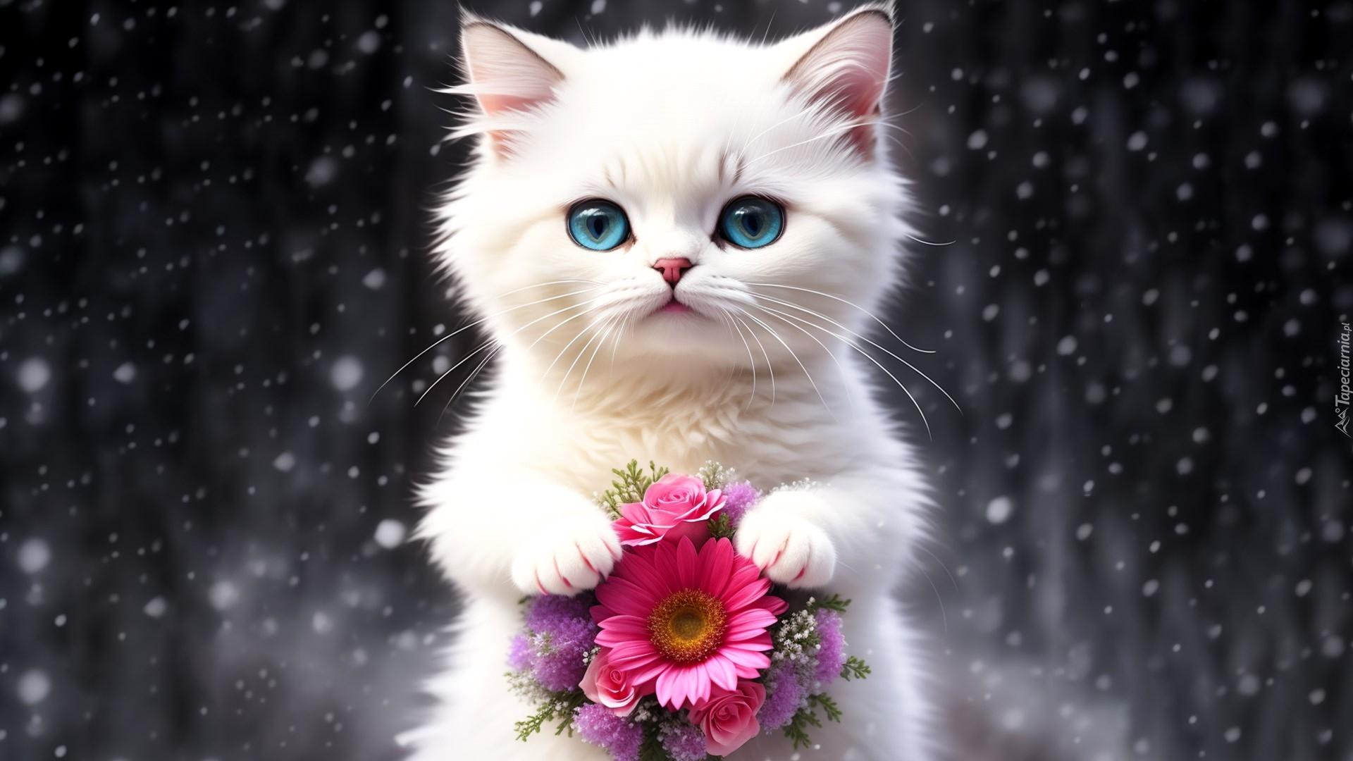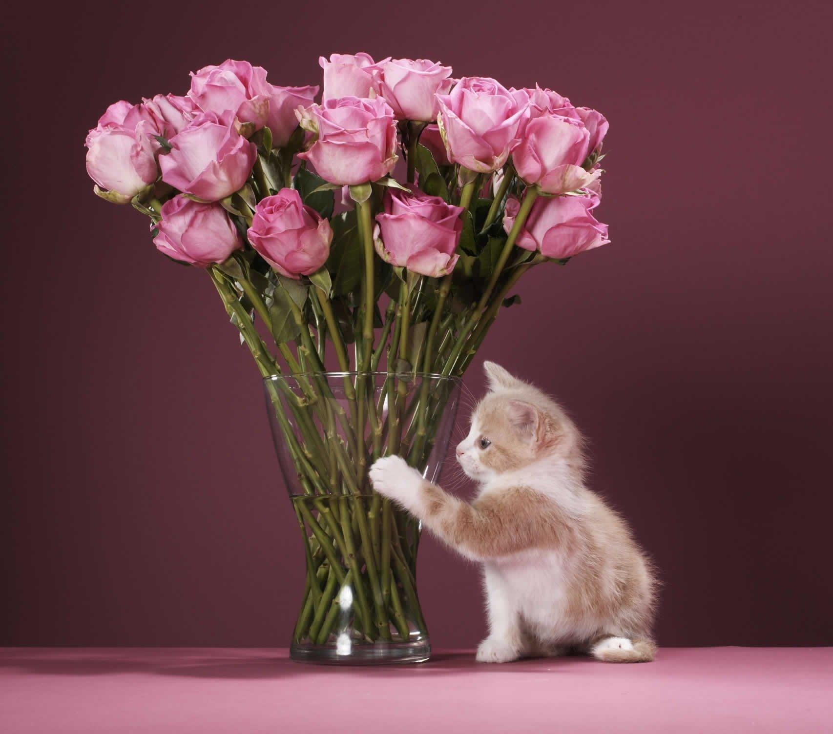 котенок дарит цветы
