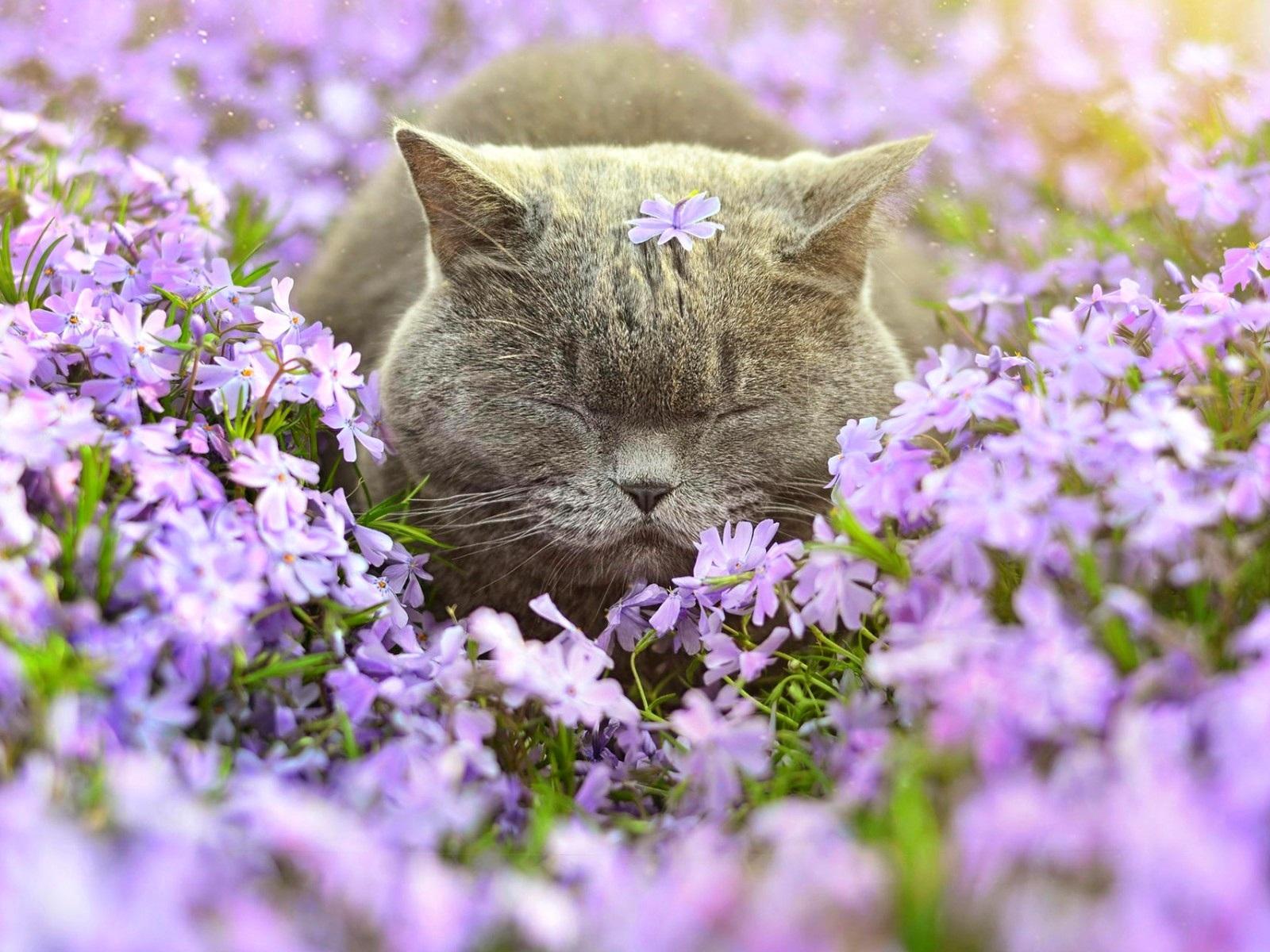 кошки и цветы