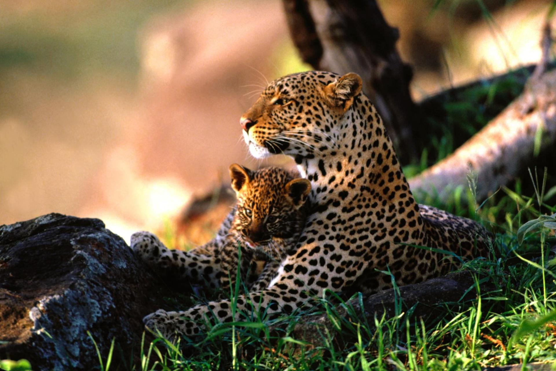 леопард с детенышем