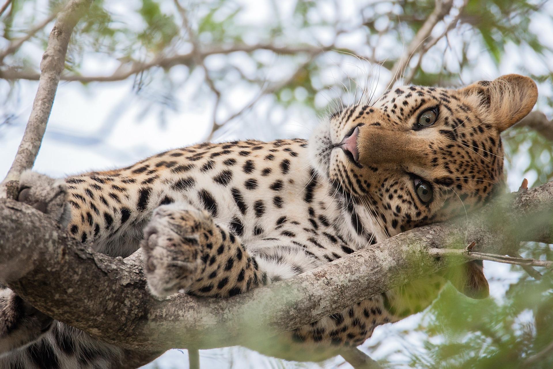 леопард на ветке