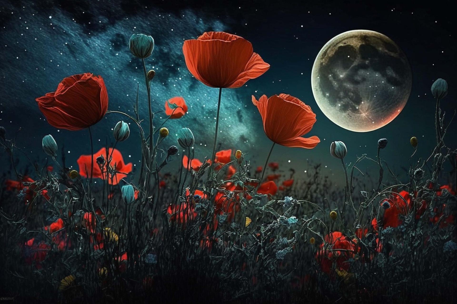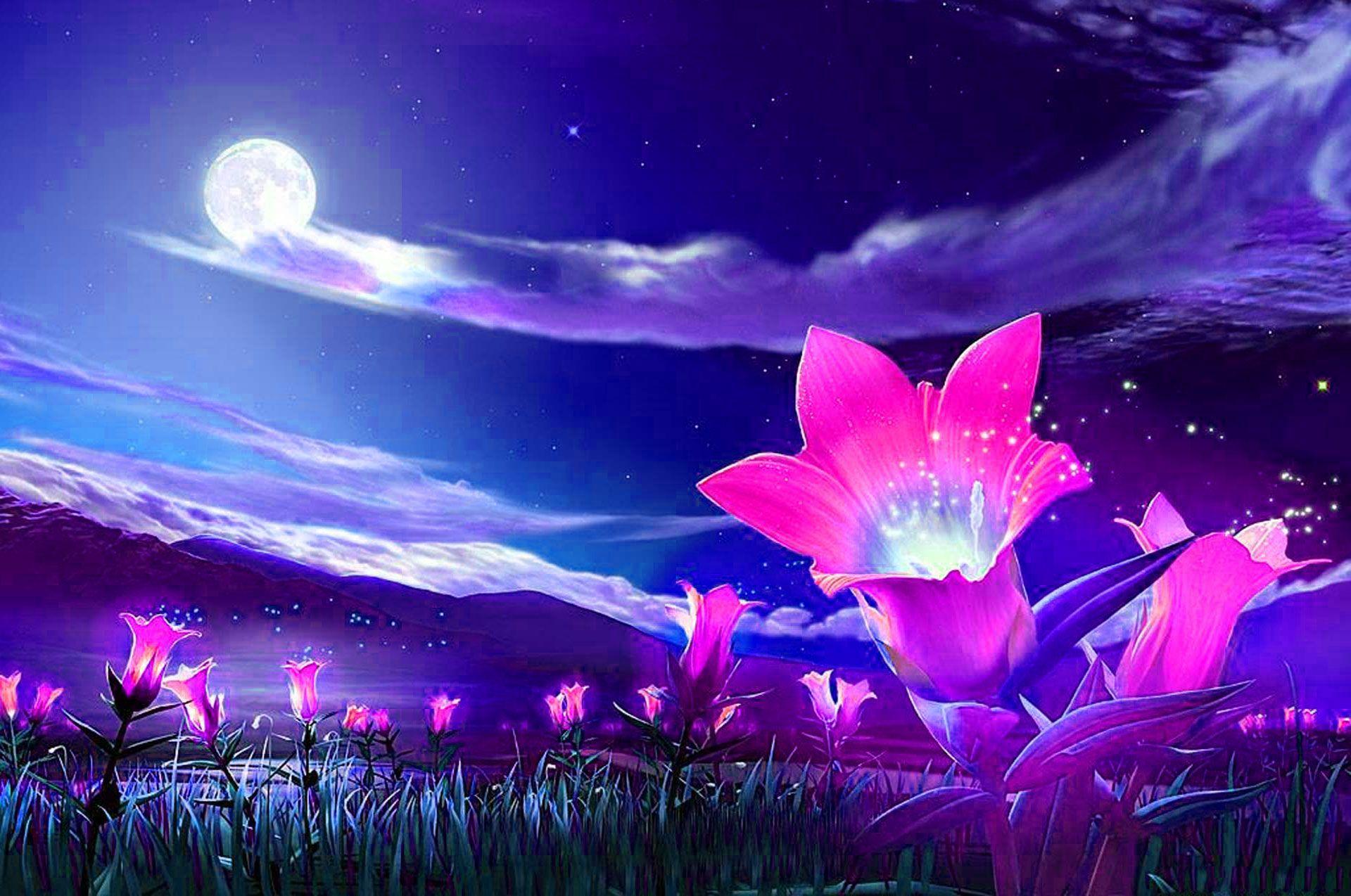 ночное поле цветов