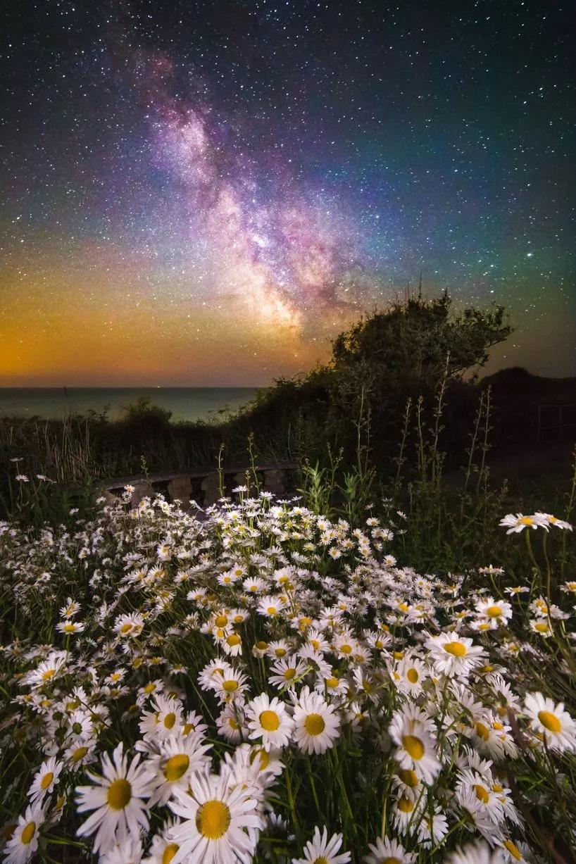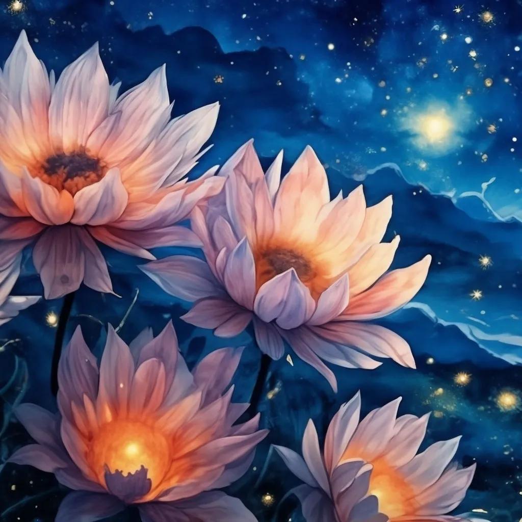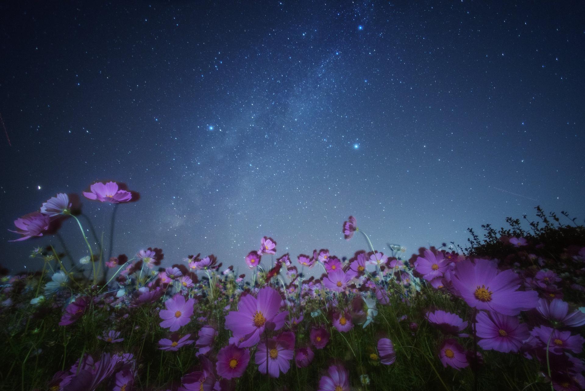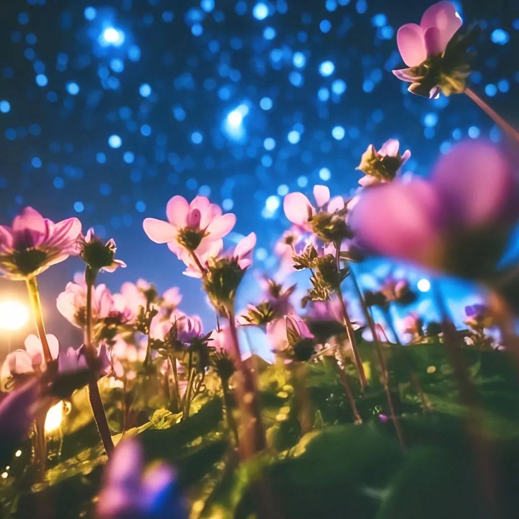 цветочный луг под звездным небом