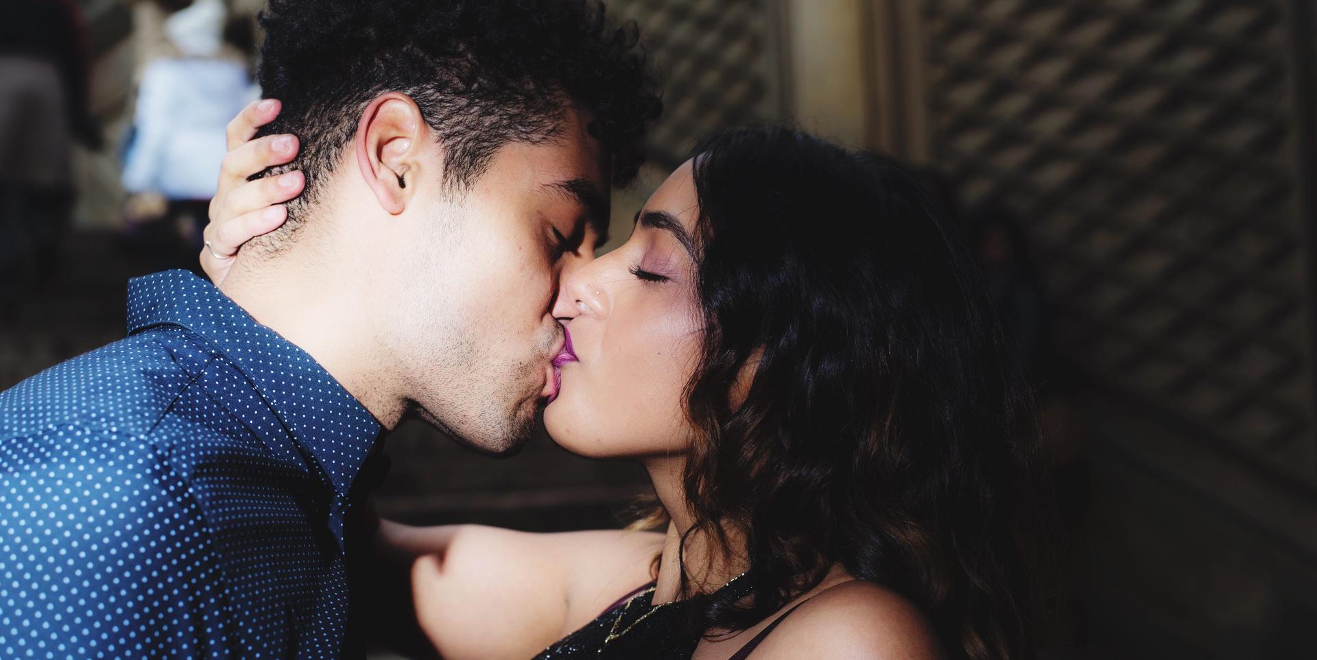 мужчина и женщина целуются в губы