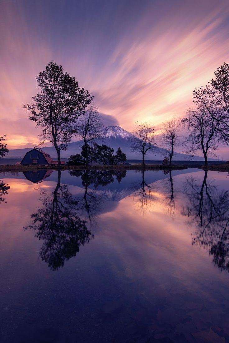 гора фудзияма в японии на восходе солнца