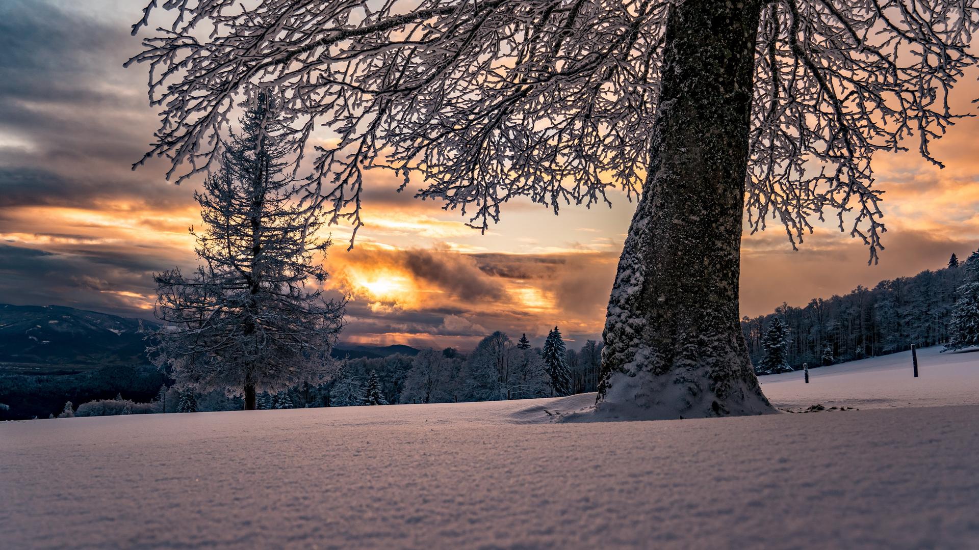 красивый закат зимой