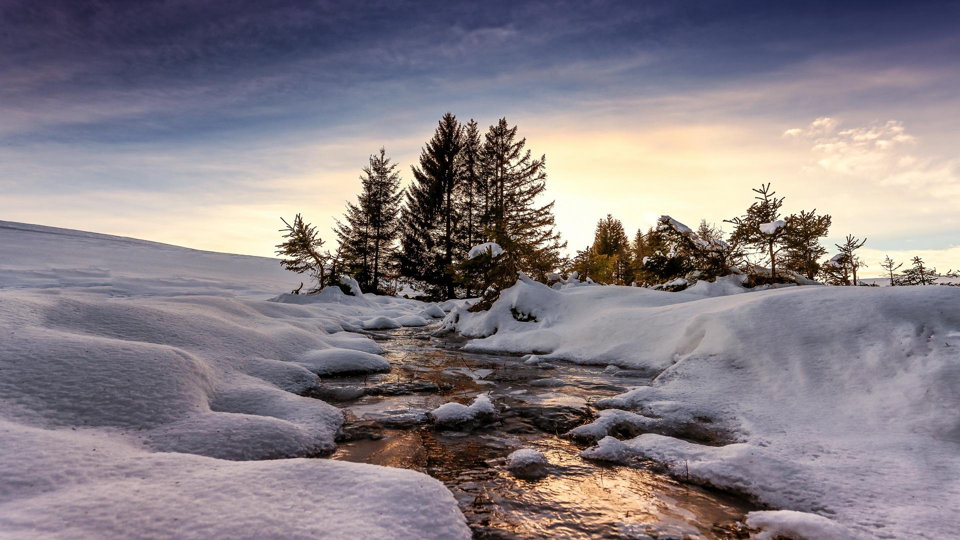 ручей зимой