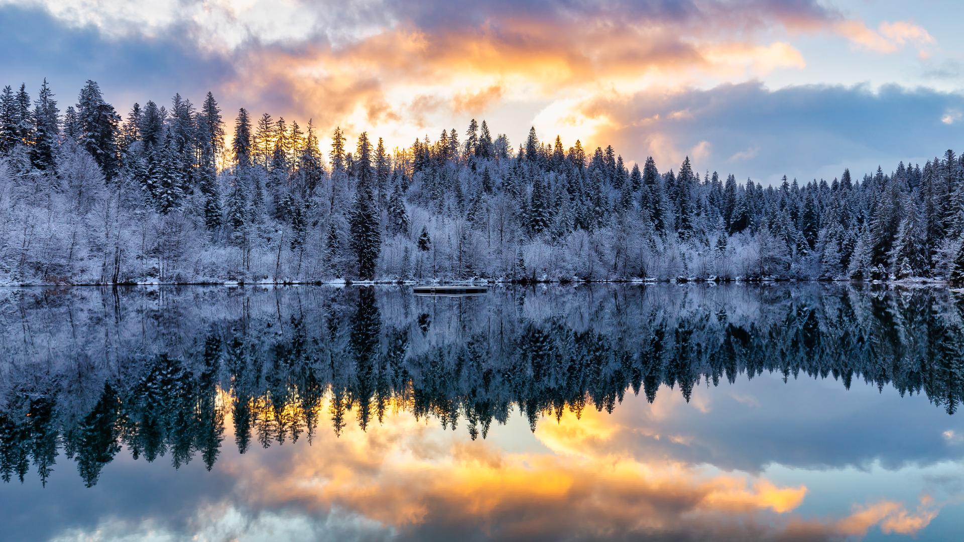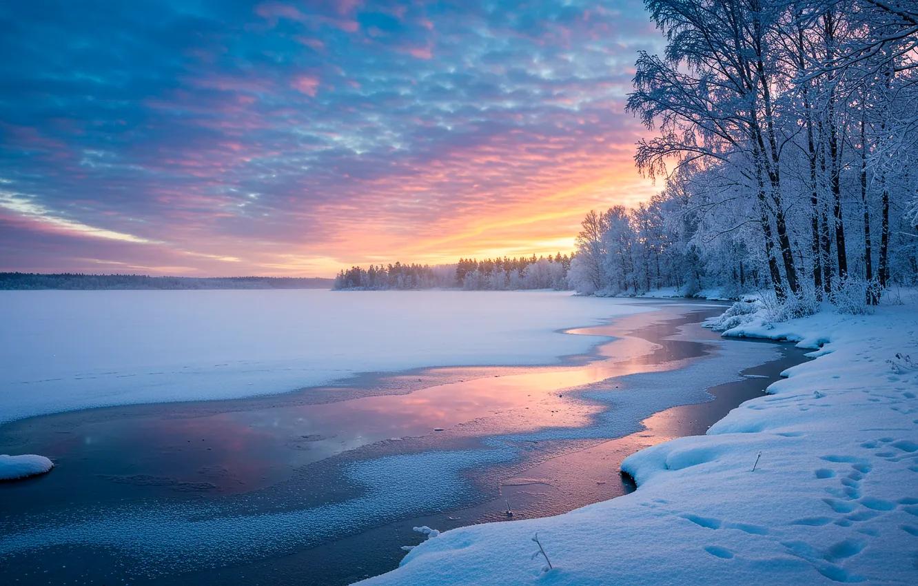 зимний закат над озером