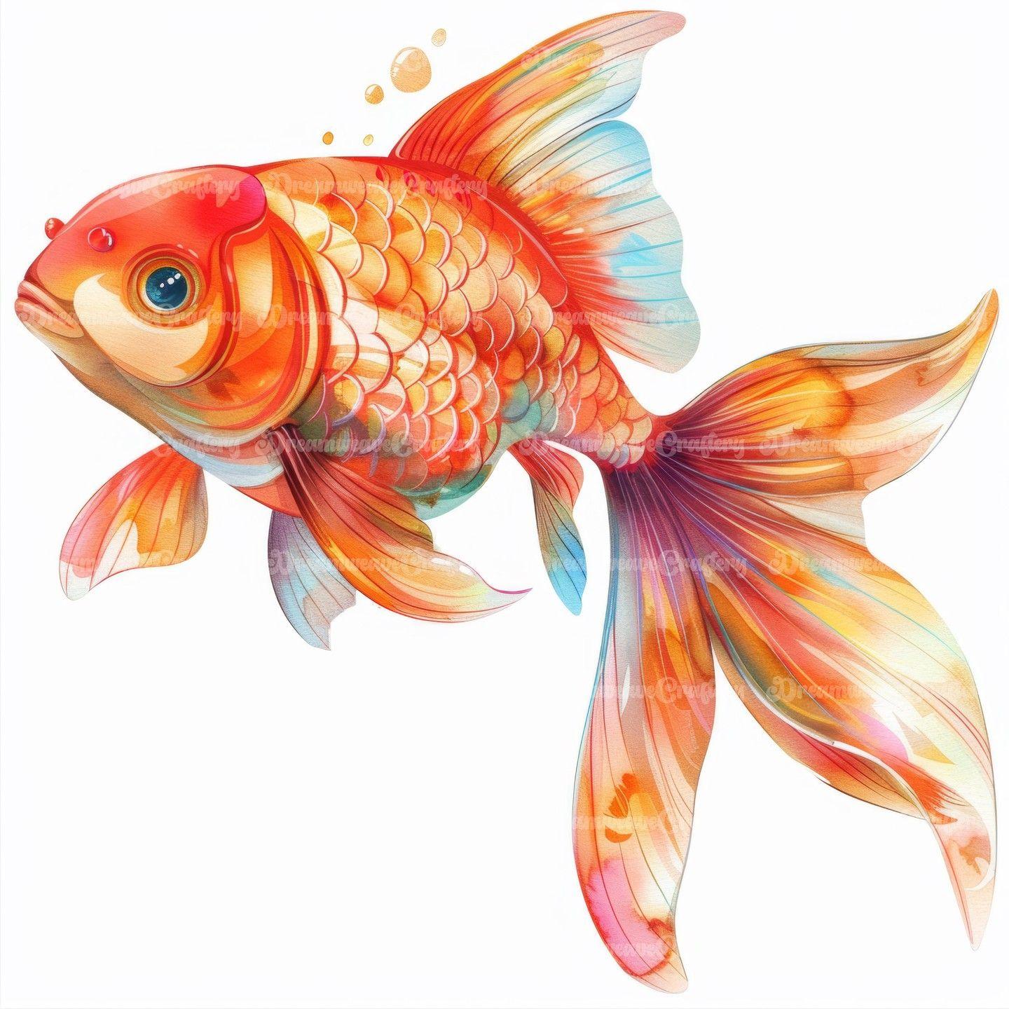 вуалехвост рыбка акварель