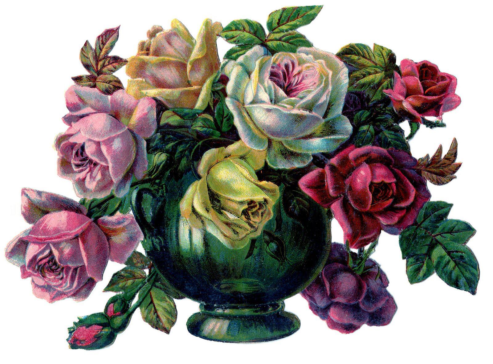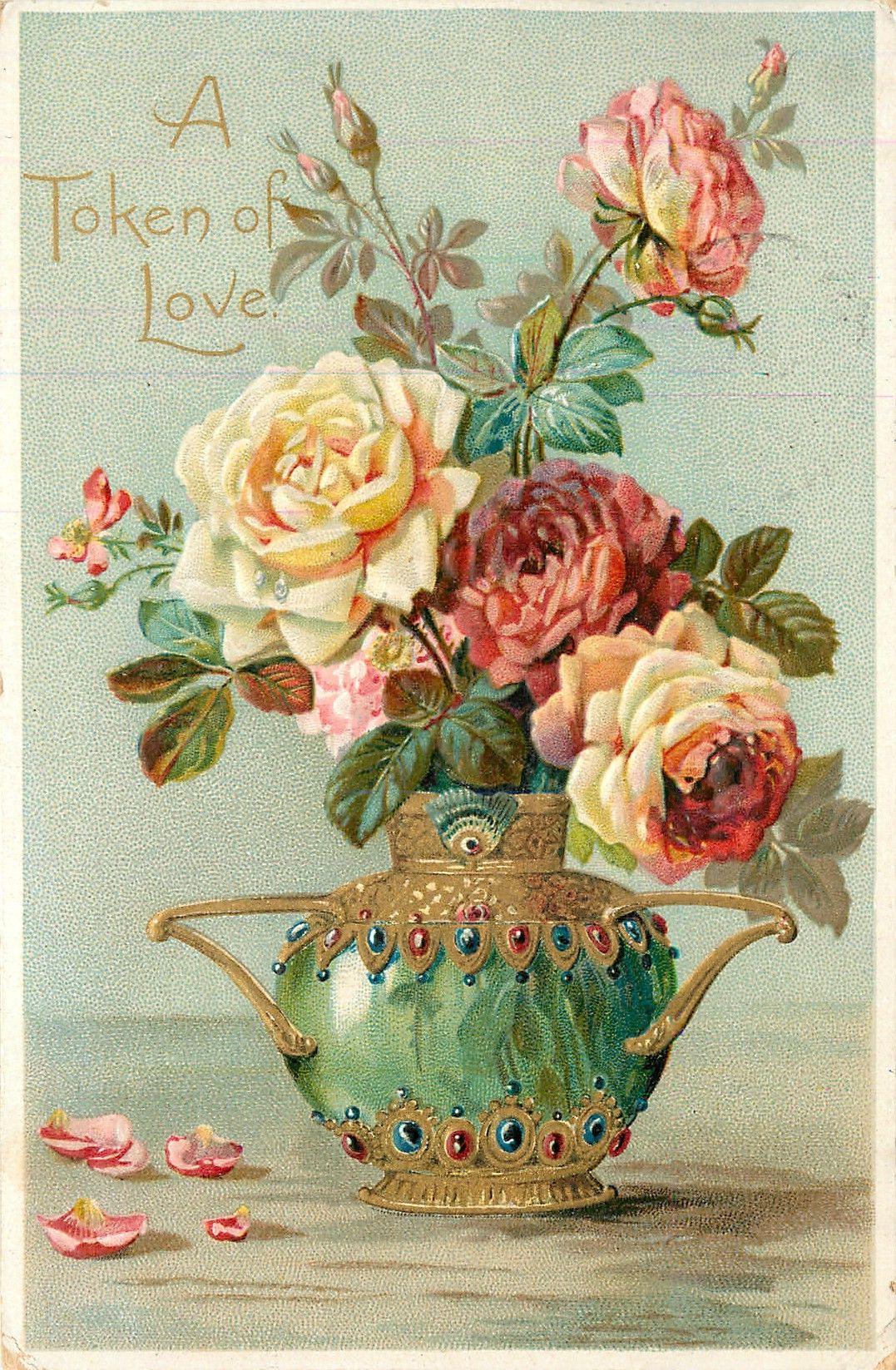 старые открытки ваза с розами