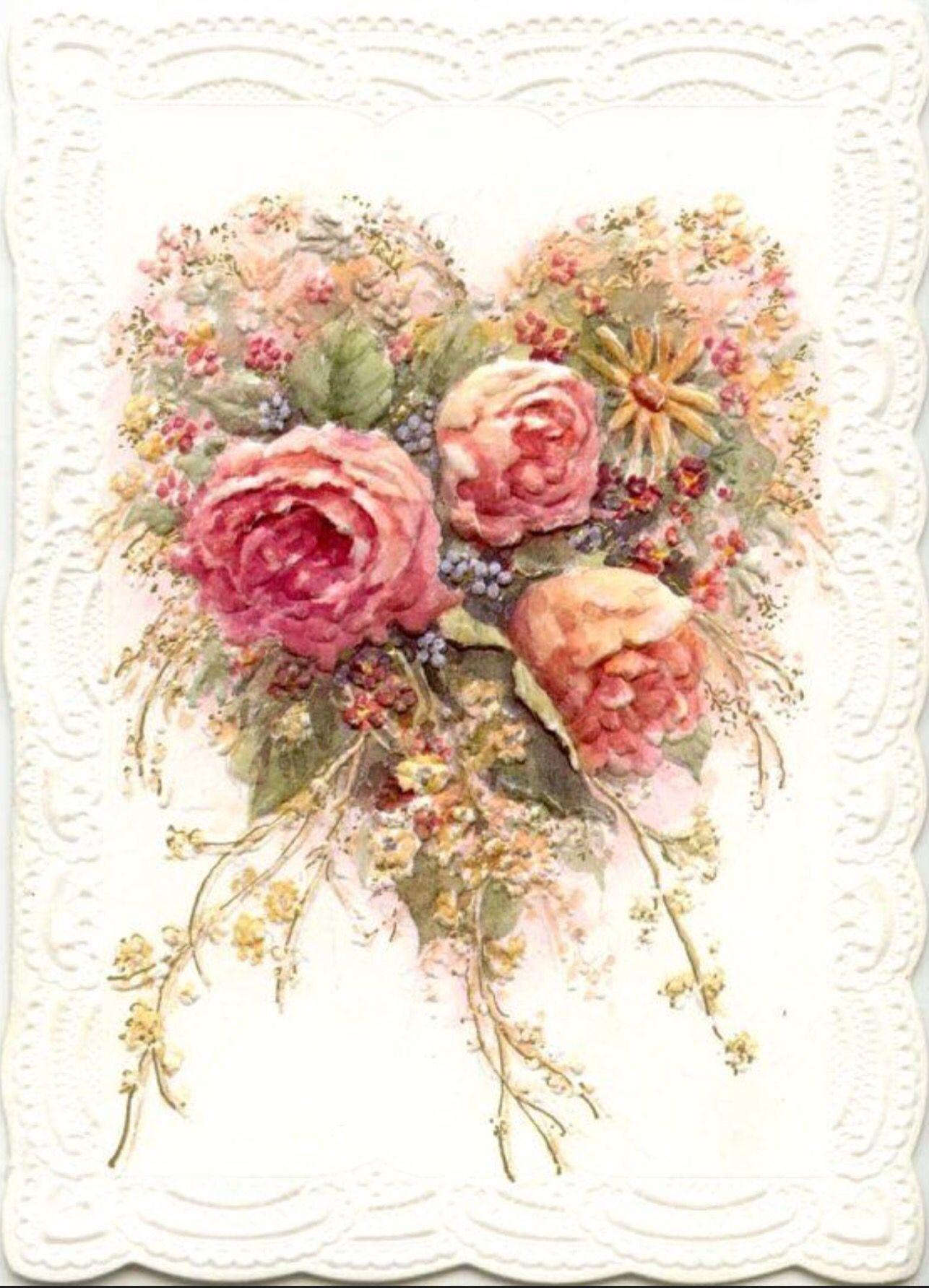 винтаж розы открытка