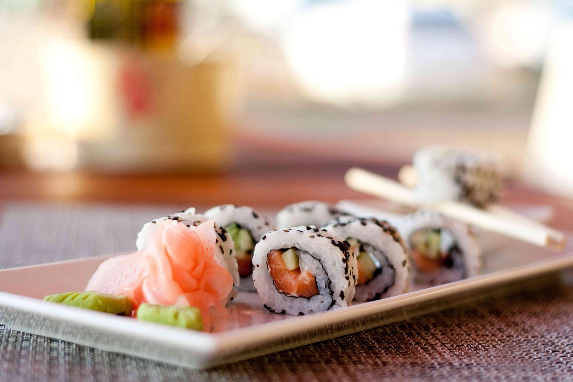роллы на тарелке