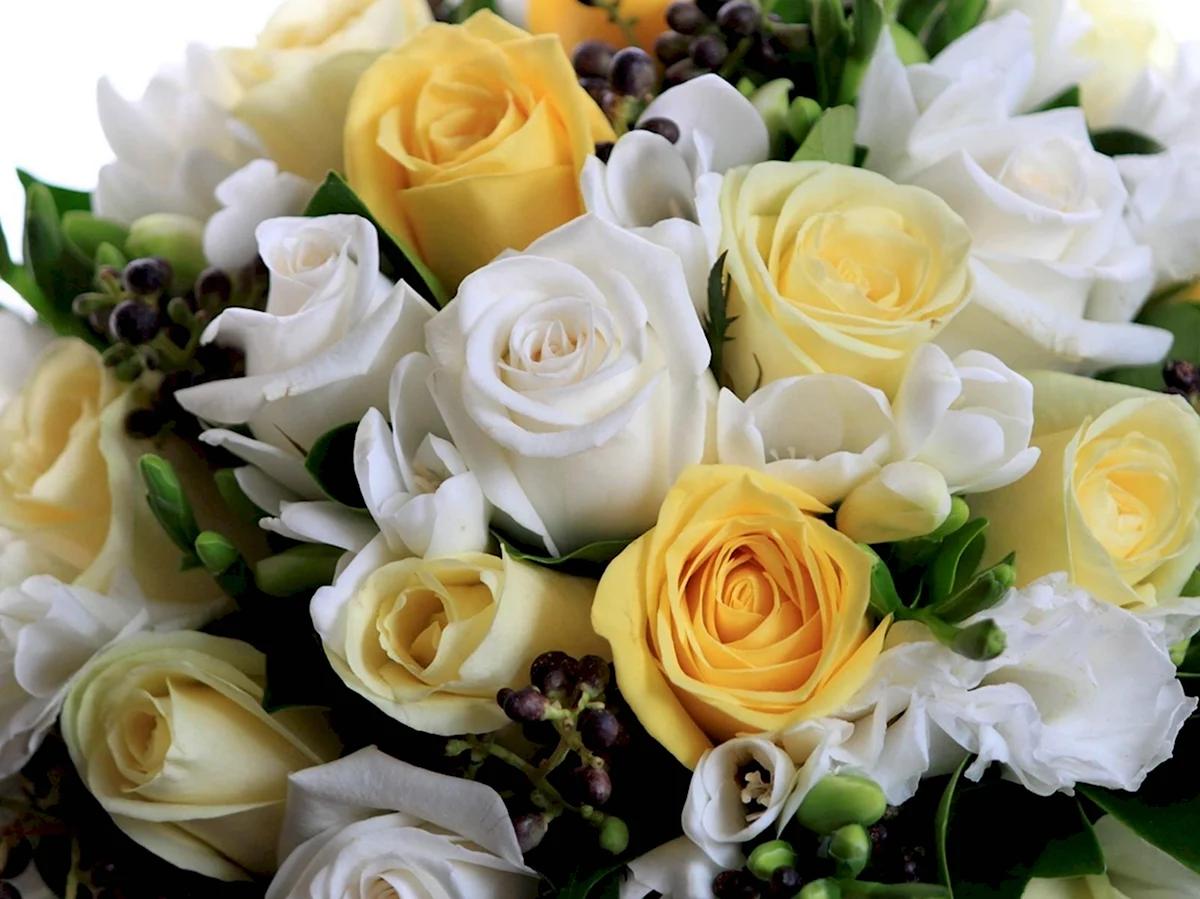 бело желтые розы