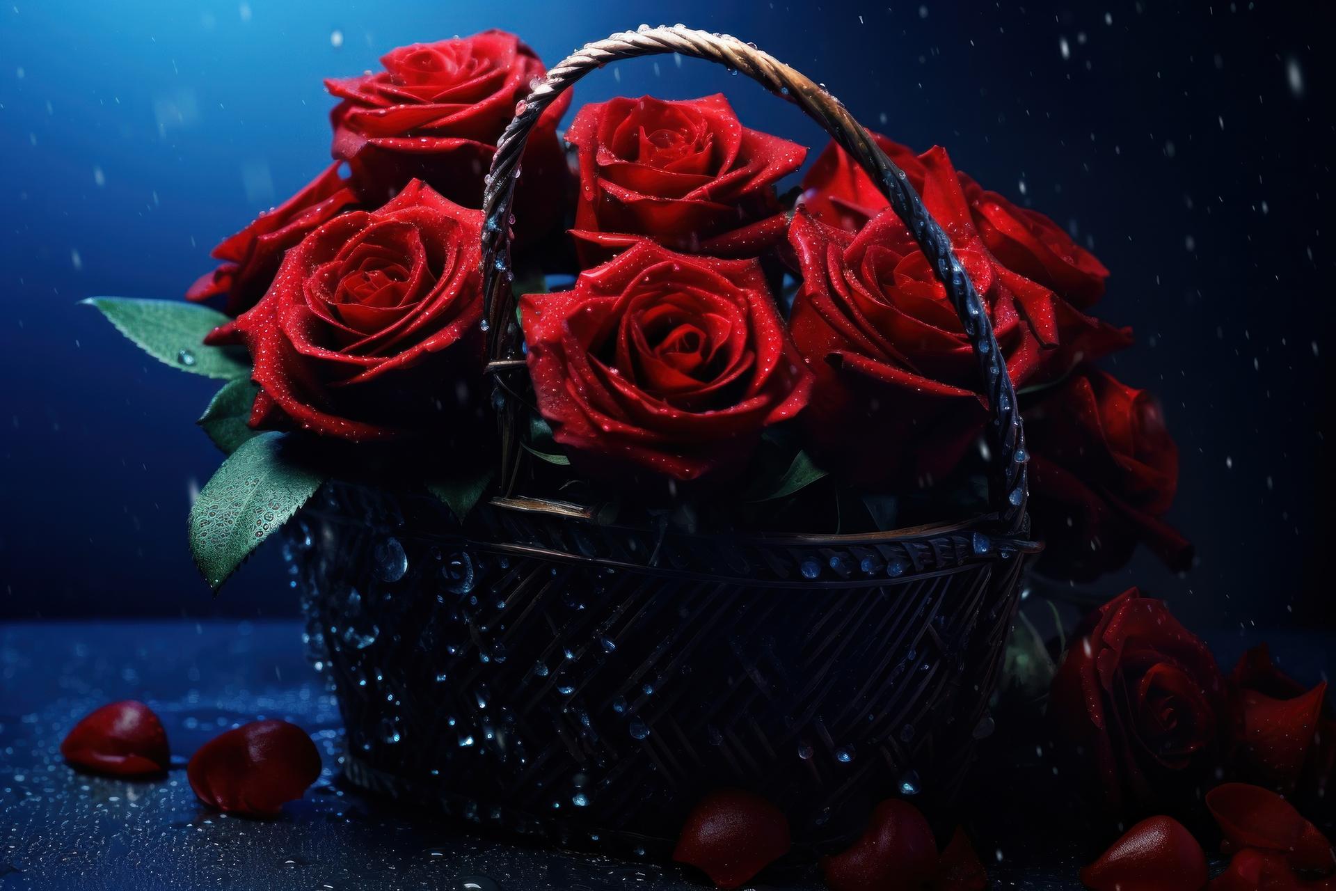 розы в корзинке