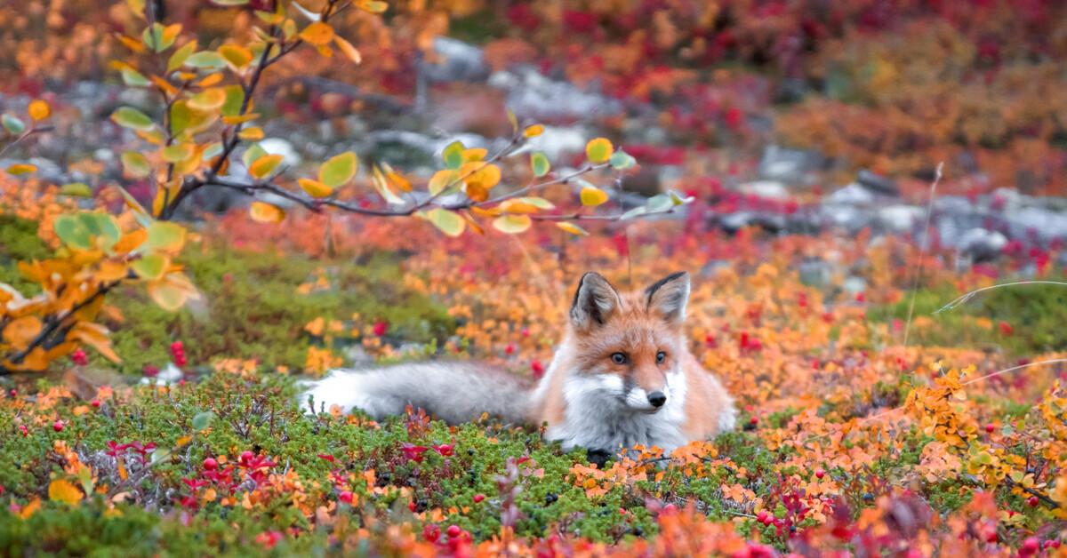 лиса осенью