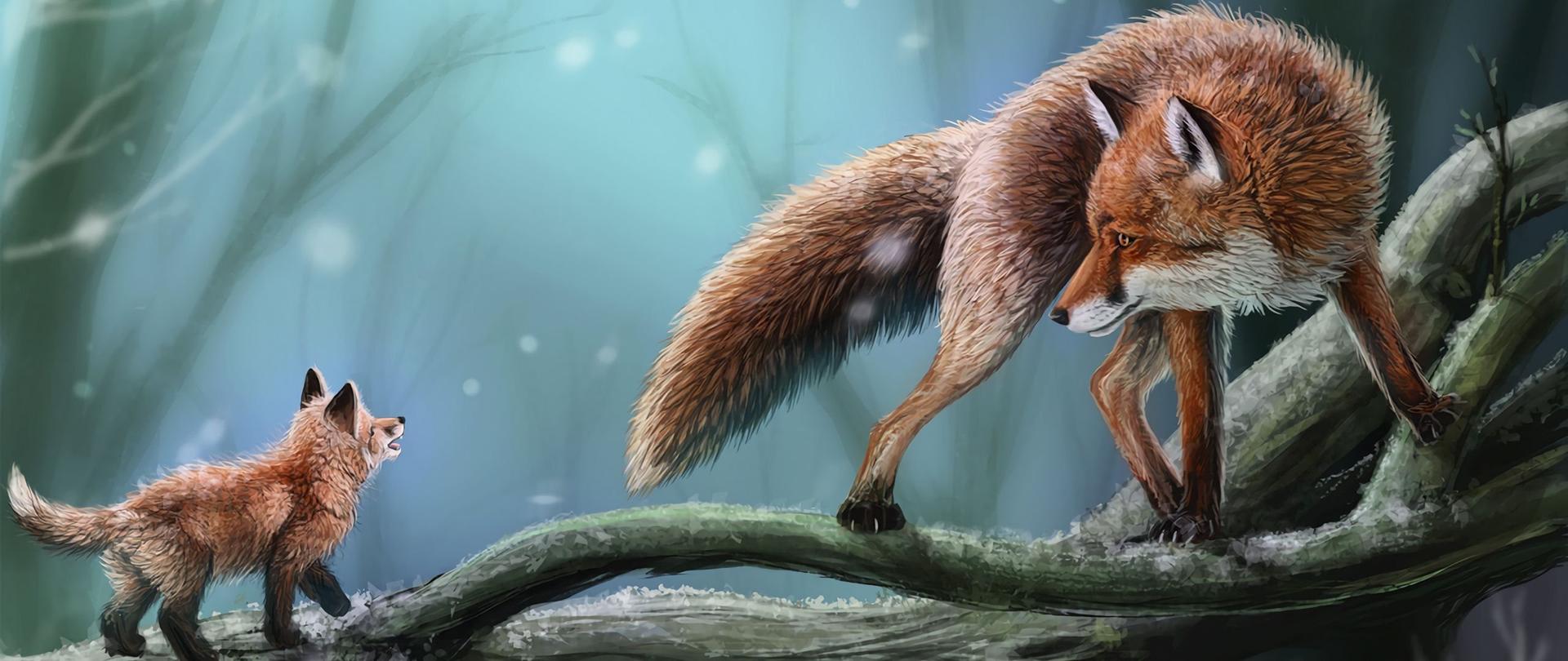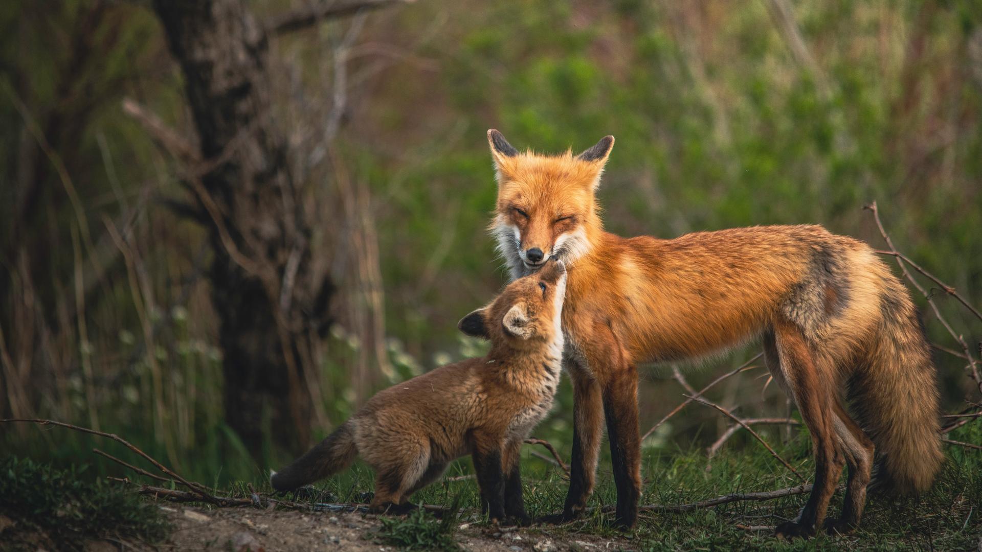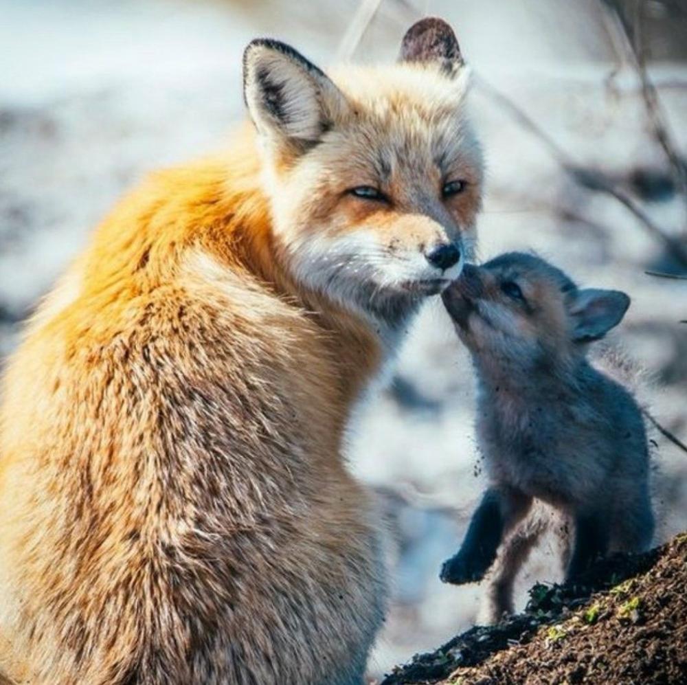 лисенок с мамой