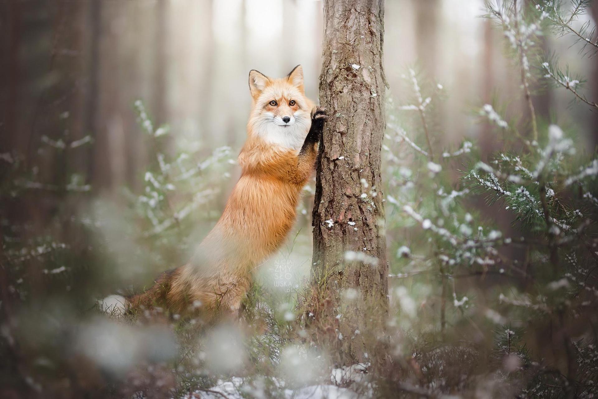 лиса зимой