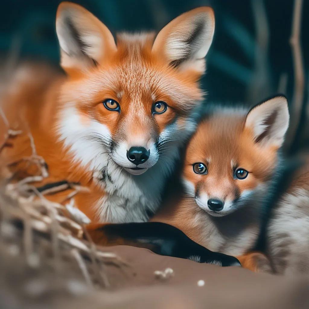 лисица и лисята в норе